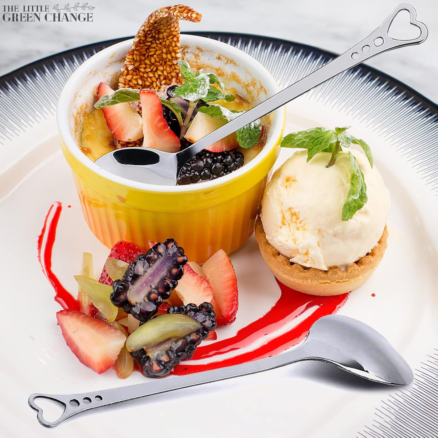 - 🥄Adorable Design Heart Spoons: Mini ice cream spoons head with a smooth, comfy handle and practical heart-shaped hook. Our 5.6'' heart shaped spoon adds poshness to your afternoon tea and coffee time
