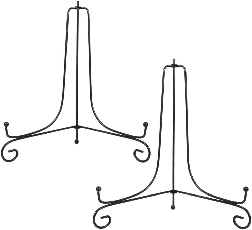 (2 Pack) Iron Display Stand, Black Iron Easel Plate Display Photo Holder Stand, Displays Picture Frames, Cookbooks, Decorative Plates, Tablets and Art 10 Inch