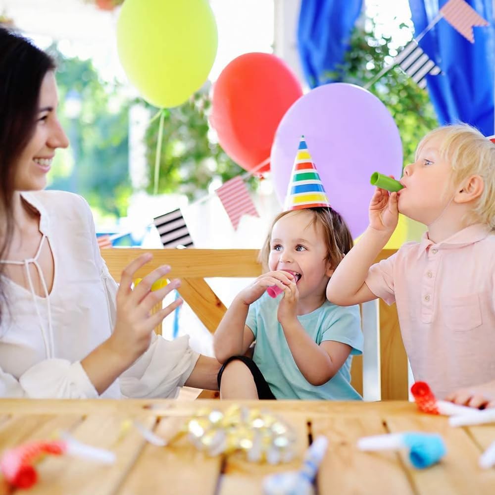 - FUN COLOR ASSORTMENT: Complement the fun noise with beautiful color. Every curated set includes a variety of pink, yellow, green, blue, and orange kids’ whistles. These little party noise makers measure approximately 2”; very easy to carry in your pocket for fun on the go.