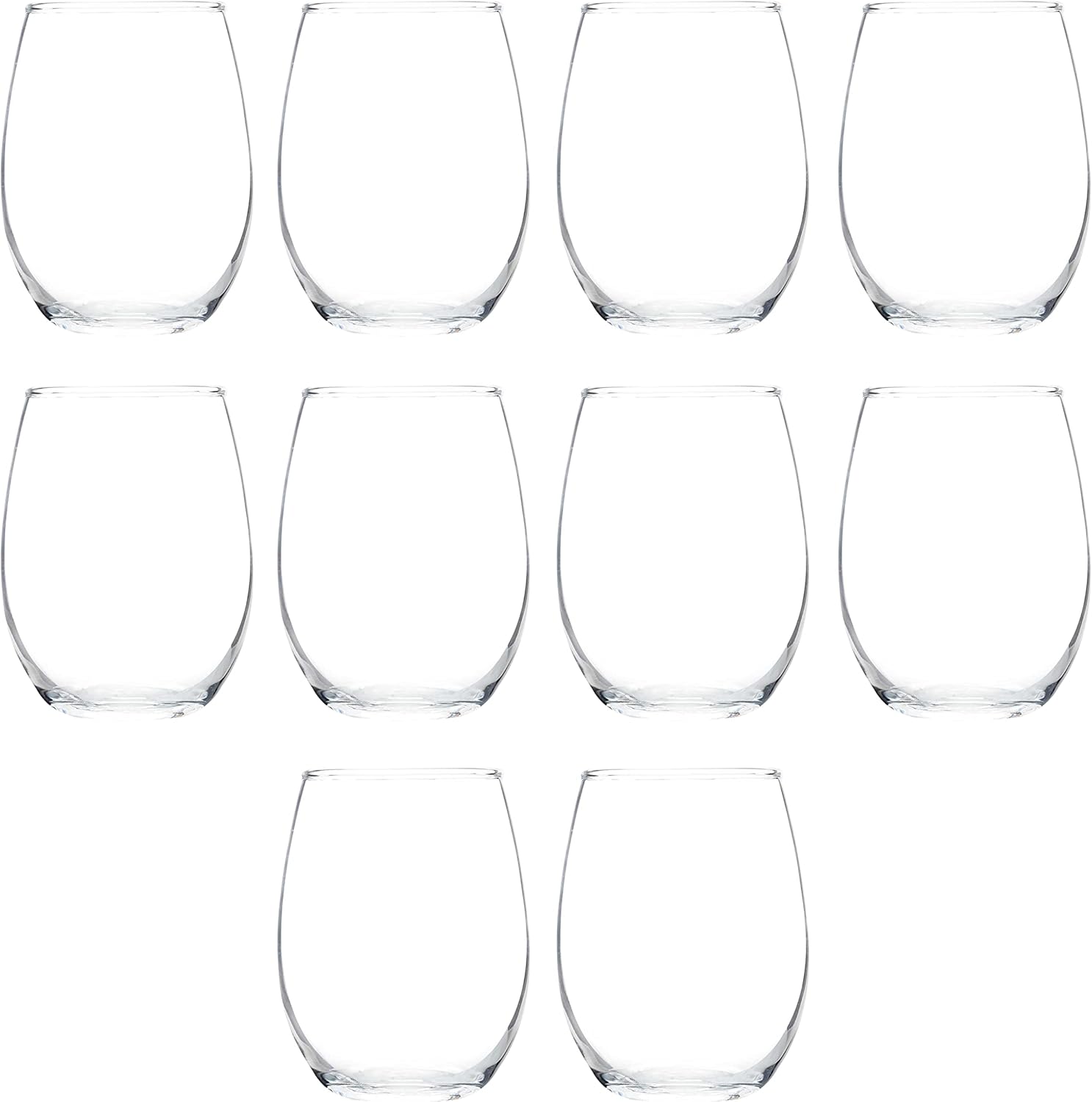 DISCOUNT PROMOS Stemless Wine Glass 9 oz. Set of 10, Bulk Pack - Great for Wedding Favors, Bachelorette Party and More - Clear Bottom Color