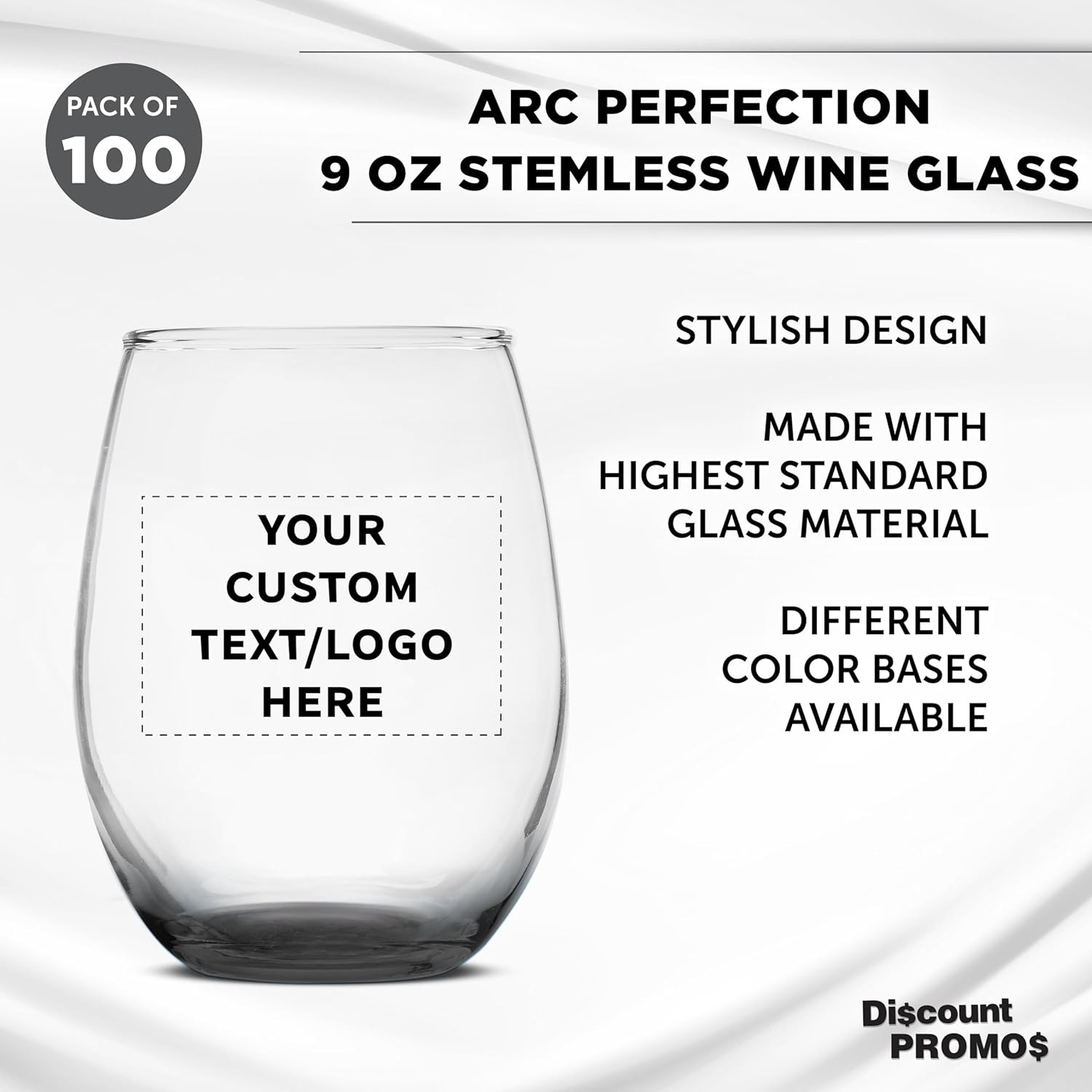 Custom Stemless Wine Glass 9 oz. Set of 100, Personalized Bulk Pack - Great for Wedding Favors, Bachelorette Party Decorations, Party Fovors, Color Bottom - Black