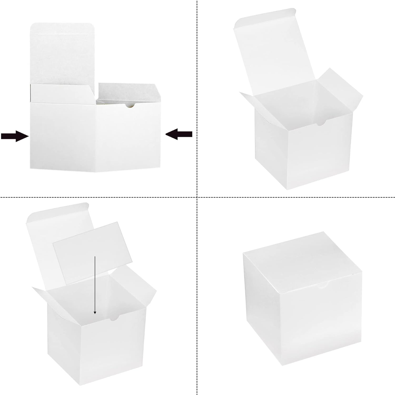 - EASY TO ASSEMBLE - All the 48 Kraft paper gift boxes are pre-folded and it only takes you seconds to assemble, gently pressing the sides to open and lock the gift boxes into place, easy to assemble and store, all these gift boxes are fully reusable and recycle.