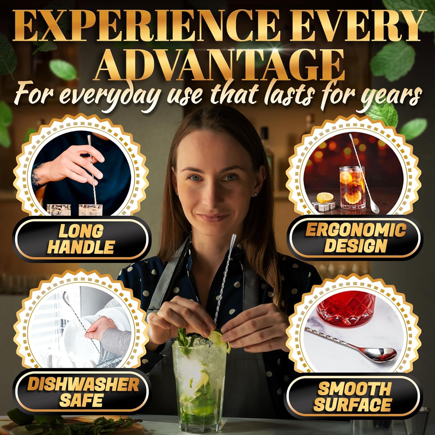 - 🌟Great Gift Idea: Our long handle spoon cocktail stirrer is a nice gift for special events. A clever addition to anyone’s routine, they make mixing drinks easy & add a touch of style to any kitchen