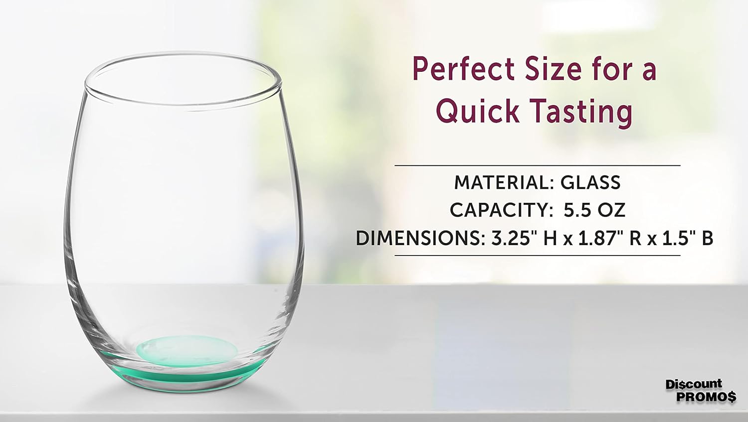 DISCOUNT PROMOS Stemless Wine Glasses by ARC 5.5 oz. Set of 12, Bulk Pack - Perfect for Hotel, Bar, Restaurant or Lounge - Green