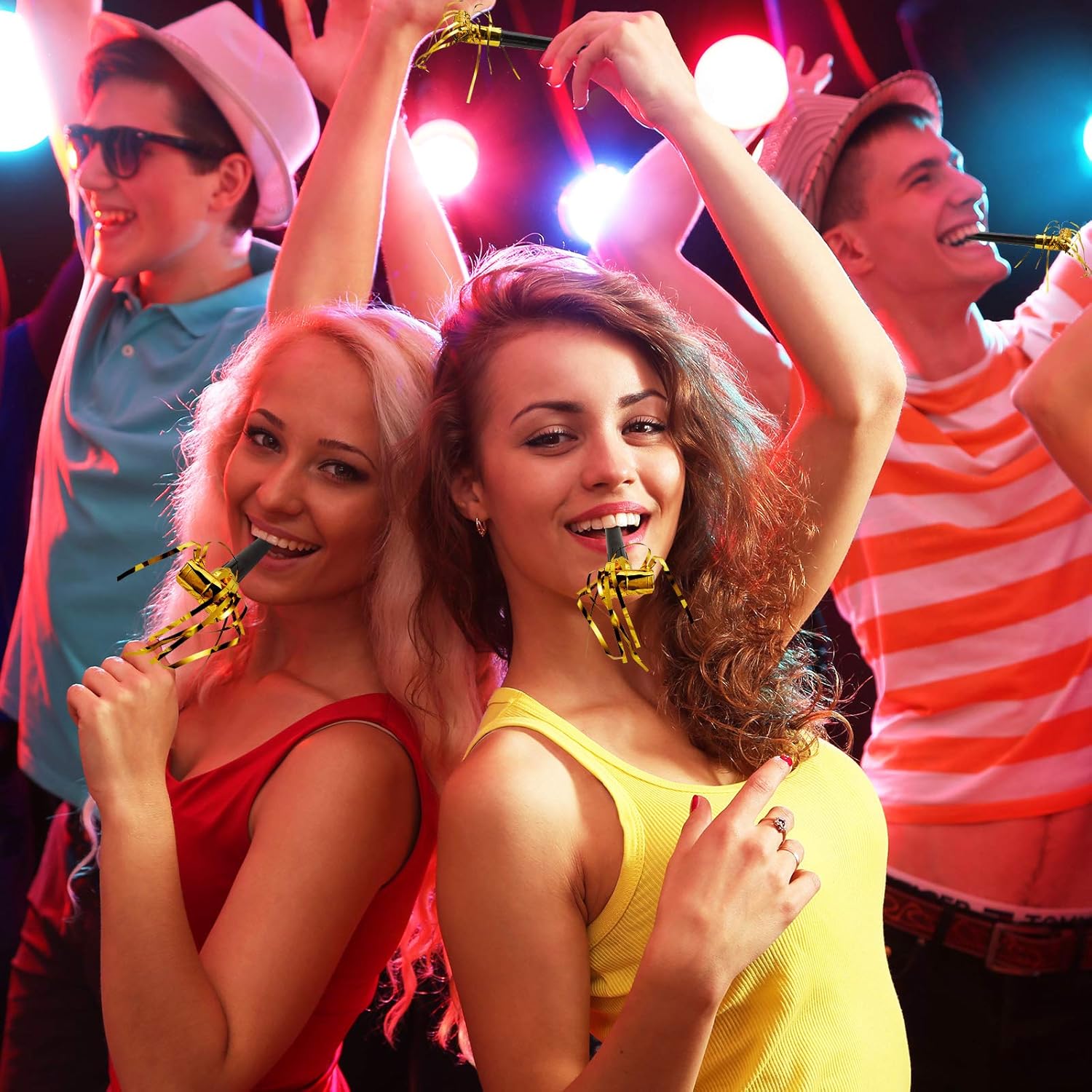 - Party accessories: these musical blowouts whistles can vibrate furiously and quickly, which are useful to form interesting sounds and joyful visual effect, will bring fun atmosphere to street party, sport game, gathering event, school activities and more