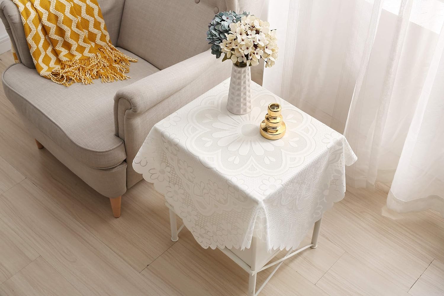 HOMECOOL Square Small Table Cloth - Ivory Crochet Tablecloth for Round Coffee Table 35 X 35 Inch - Sunflower