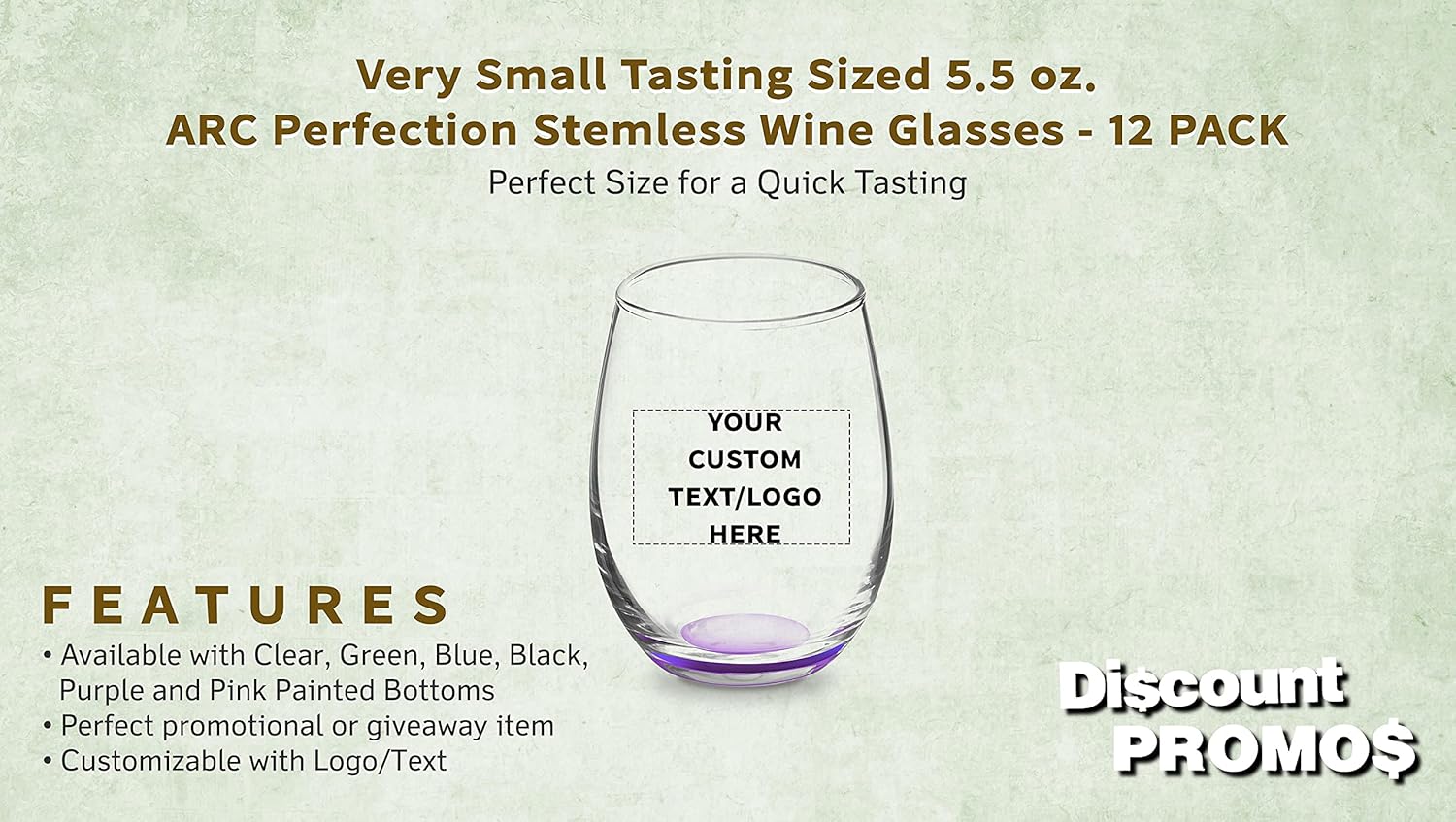 Custom Stemless Wine Glasses by ARC 5.5 oz. Set of 12, Personalized Bulk Pack - Perfect for Hotel, Bar, Restaurant or Lounge - Purple