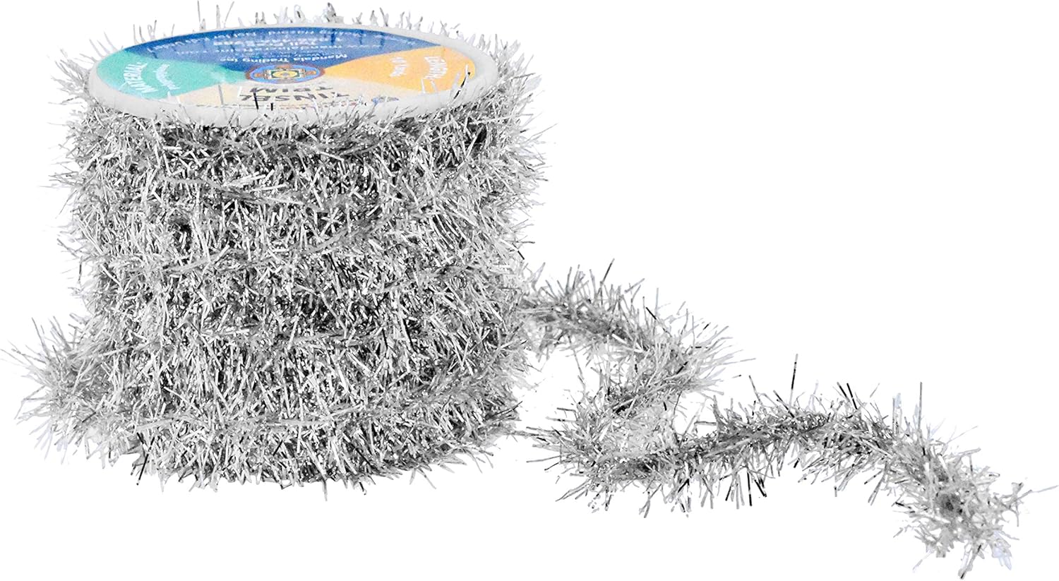 - Long Bulk Reusable Christmas Garland Tinsel Roll: The 0.75β wide twisted silver garland for Christmas tree is 30 feet in length. Great for living rooms, bedrooms, schools, & supermarkets, the Christmas tree silver tinsel also pairs well with string lights.