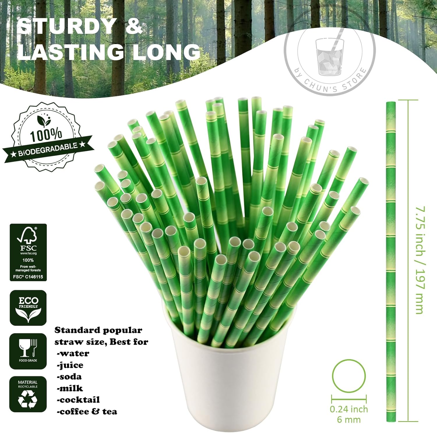 [1000 Count] Green Bamboo Paper Straws for Drinking, 7.75" x 0.24", 100% Biodegradable