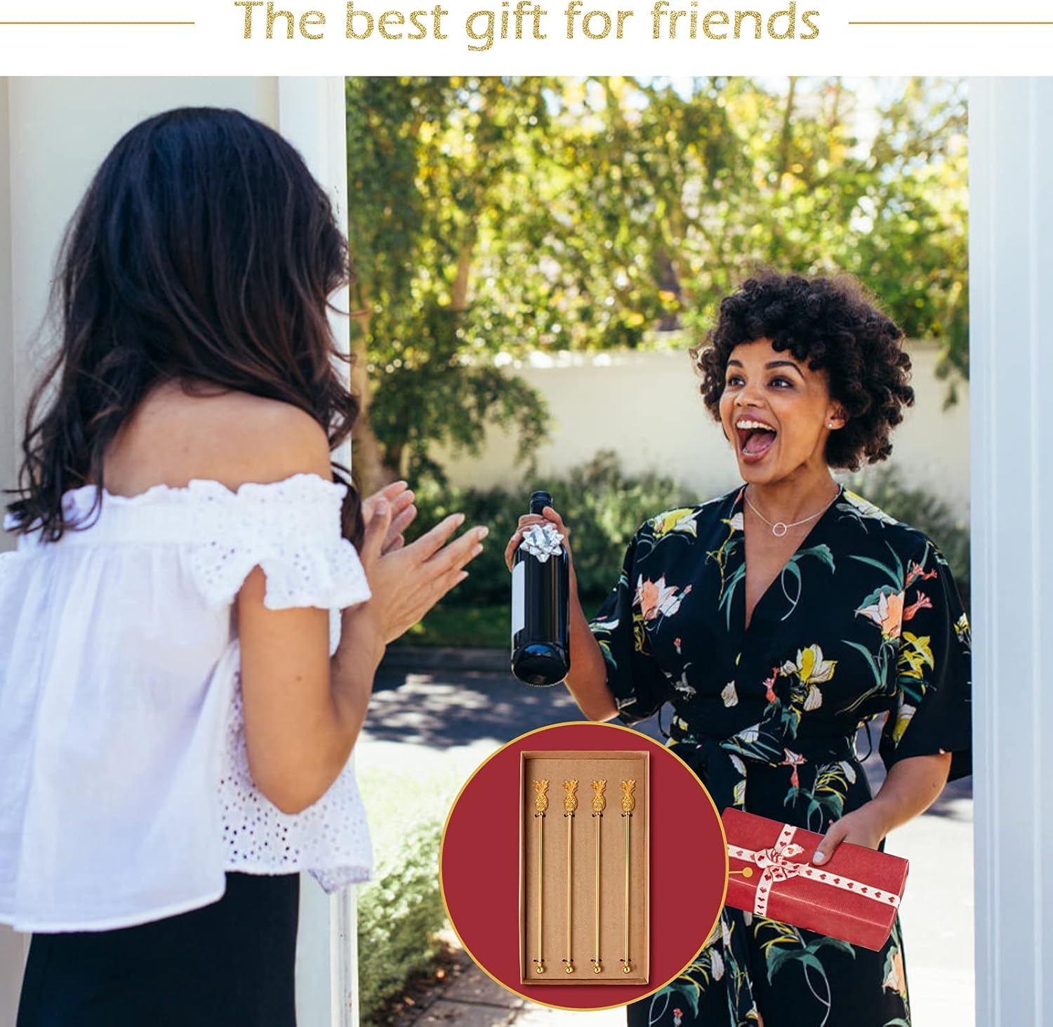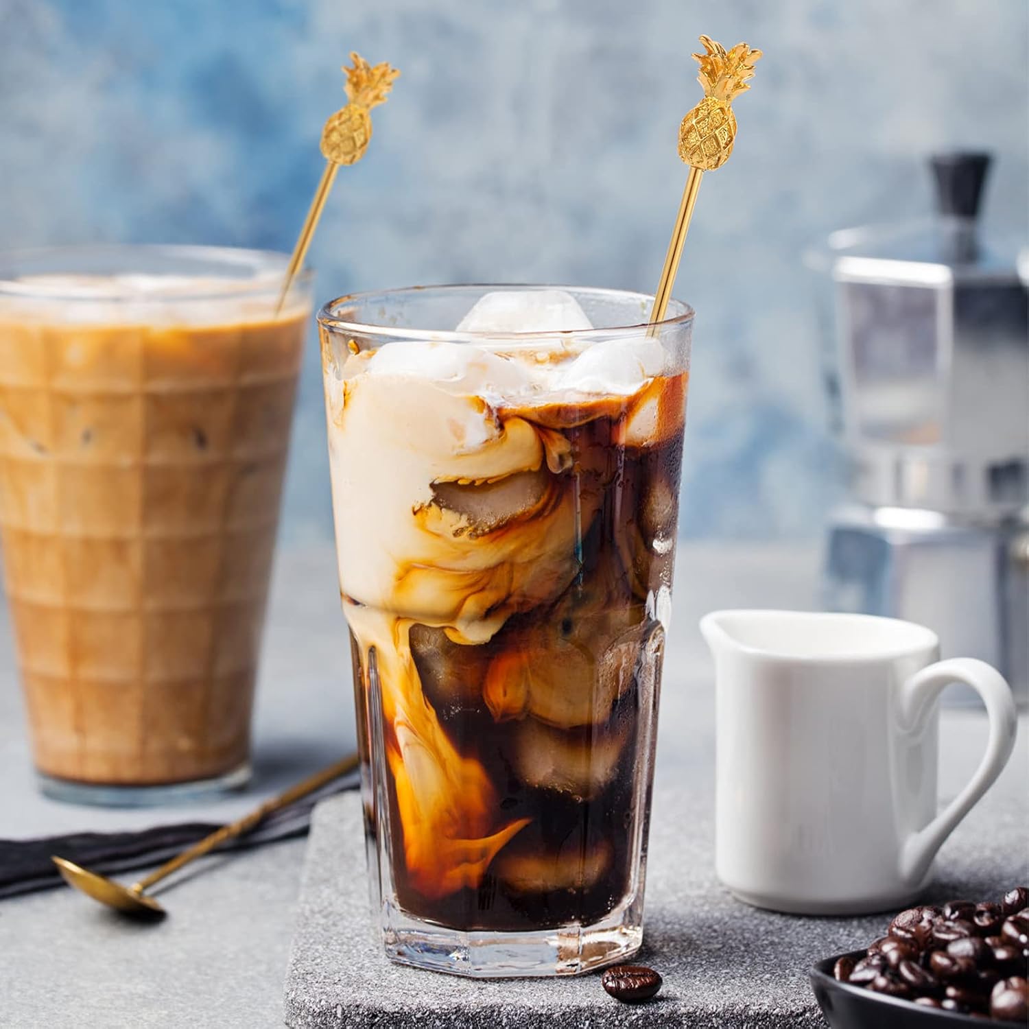 Pineapple Drink Stirrer Sticks Stainless Steel Coffee Beverage Stirrers,Set of 4 Cocktail Swizzle Stick,7.28", Gold