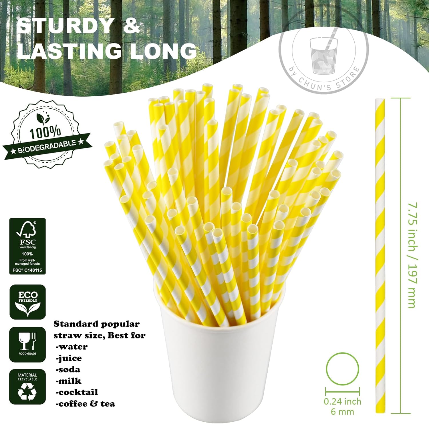 [1000 Count] Yellow Paper Drinking Straws, 7.75 Inch -Restaurant Bulk Pack