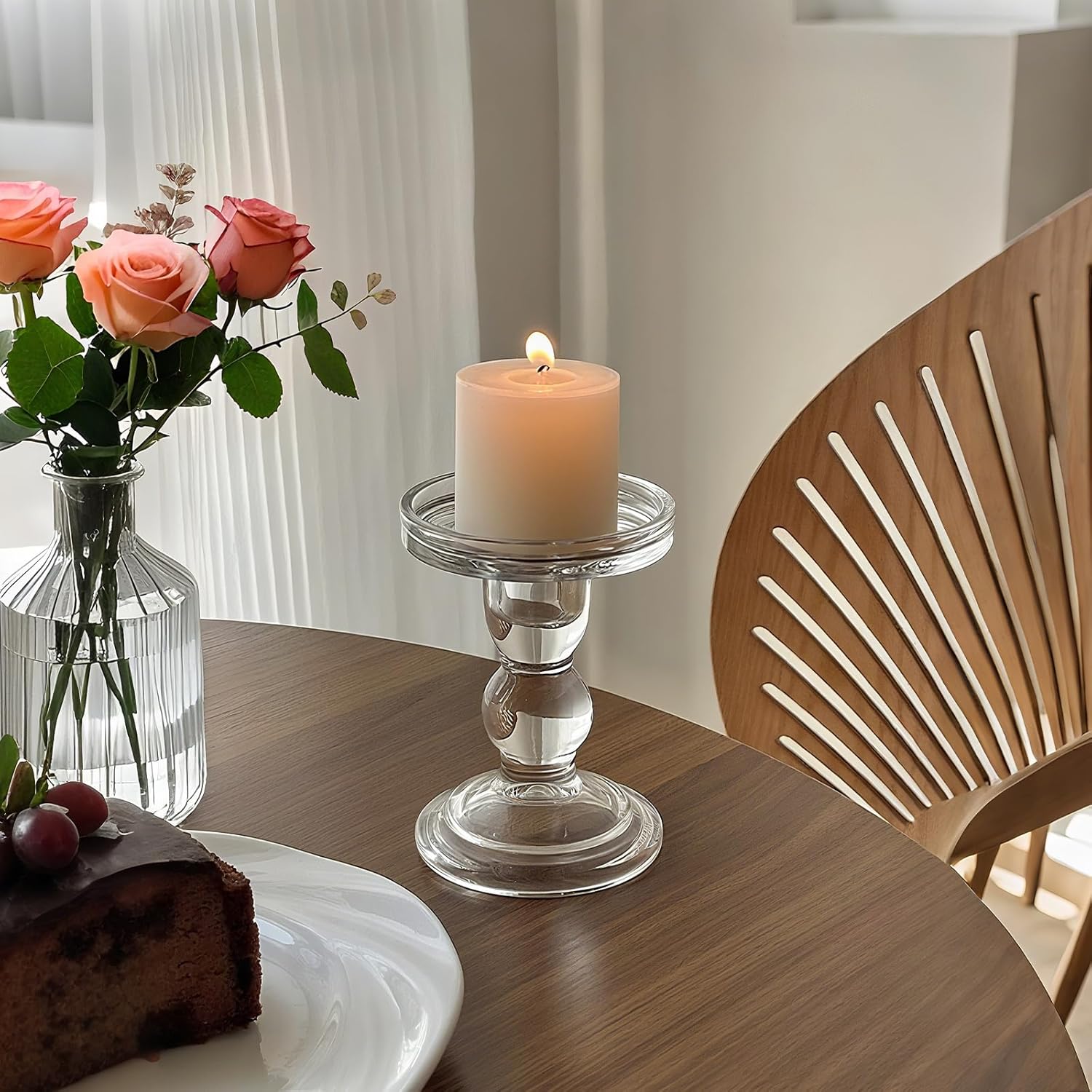 - Premium Quality: The clear pillar taper candle holder is crafted with superior-quality thick glass, hand-blown, crystal and glittering, designed with a stable base for the perfect table centerpieces.