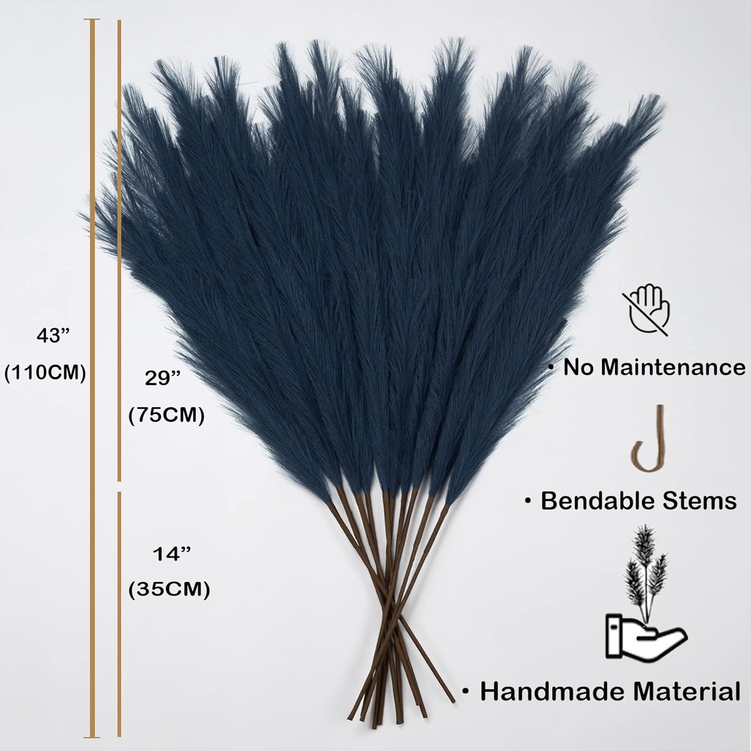 - Adjustable Size: Big and full pompas grass has 14ββ long stem and 29ββ long plume. Itβs is the perfect vase filler, you can bend the wire to adjust the length if you want, change a boring vase into a beautiful center piece, brings a certain aesthetic to the room