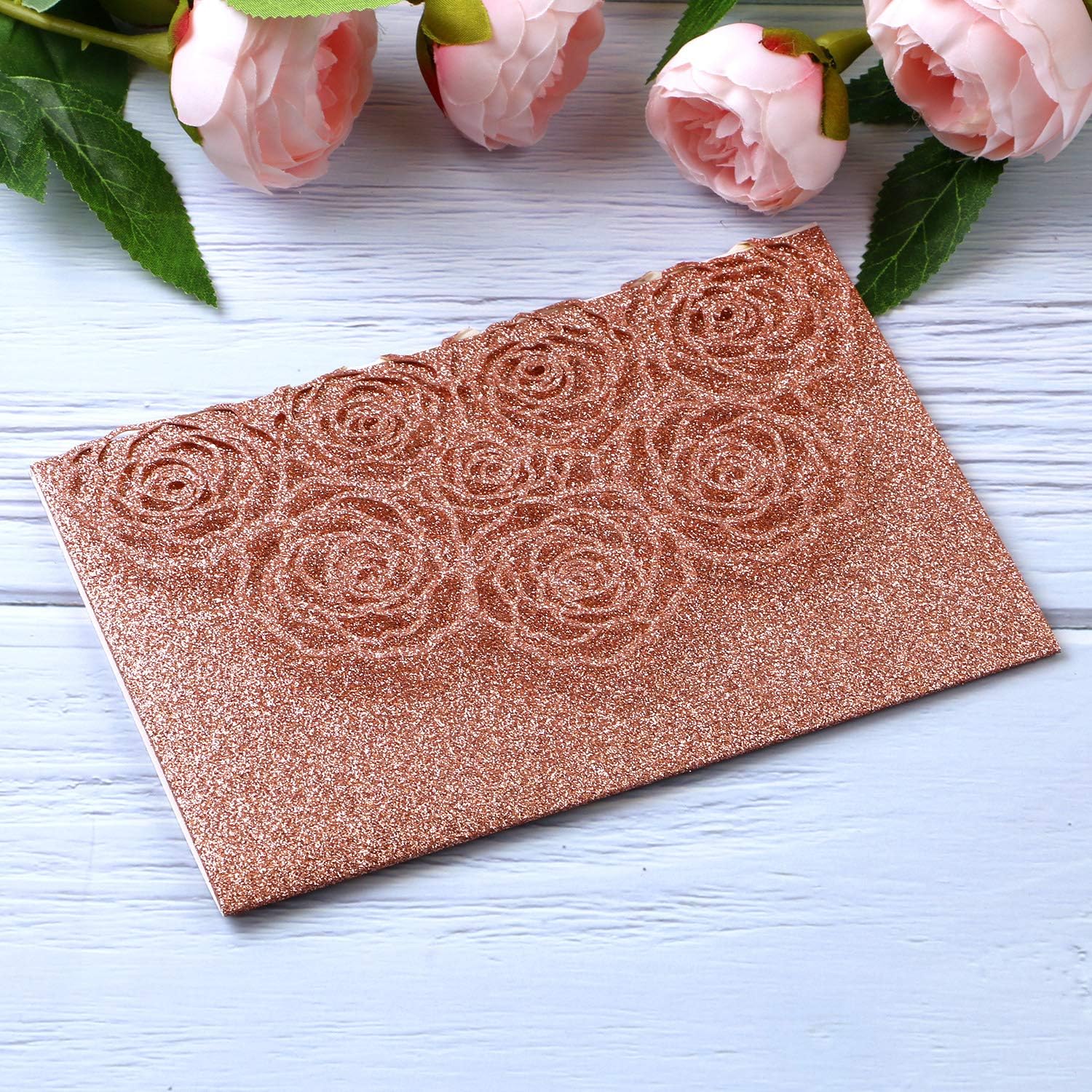 - π·.[Design]:The invitation pocket made of high-quality paper, and the laser-cut rose print design for many colors .