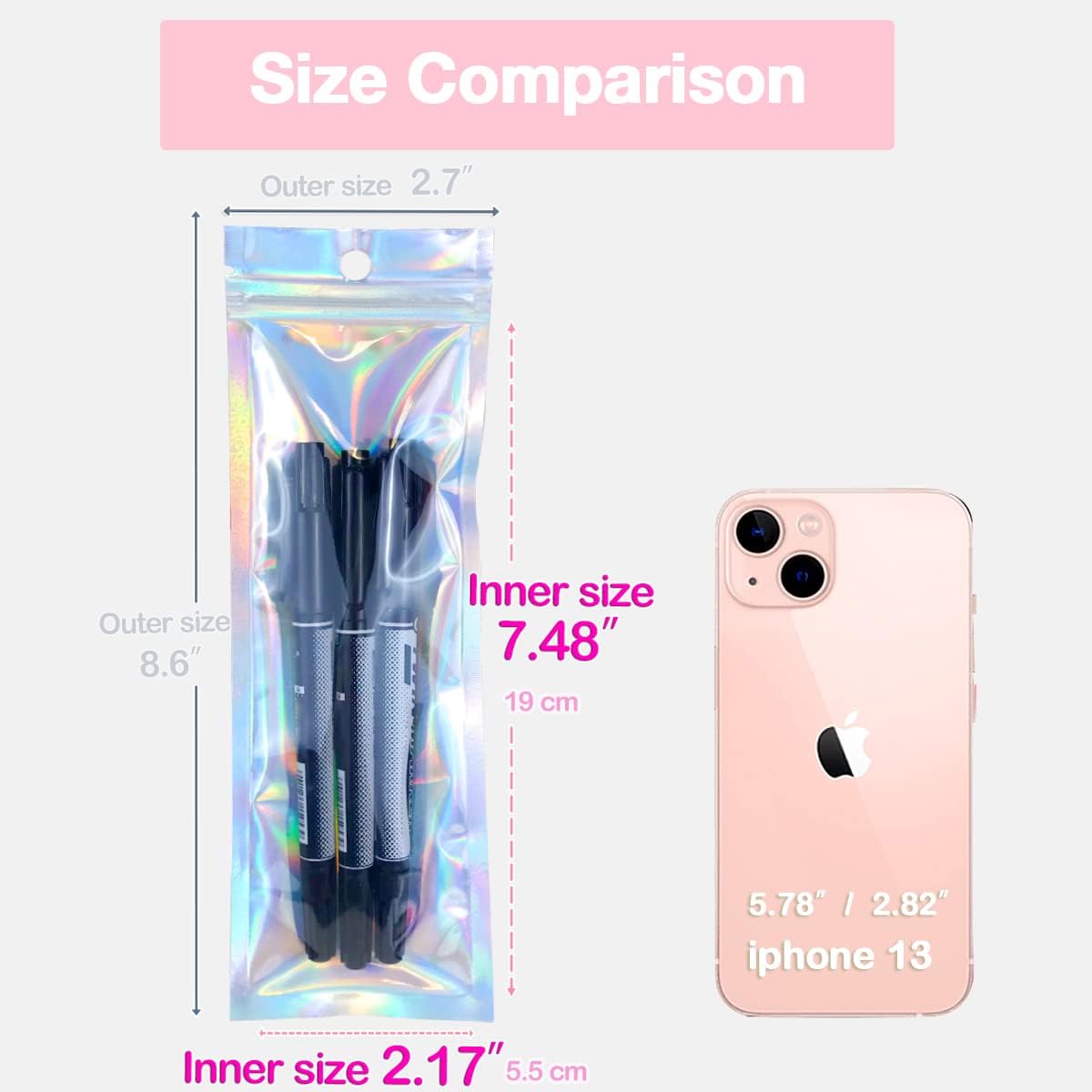 - ❤️Perfect Holographic Resealable Bags - These holographic bags are made of quality metalized film, durable and shining, which provide you fantastic rainbow colors effect. The front side of the resealable bags for packaging is clear, so you could see what is inside. These large resealable bags are reusable and safe for your small business product packaging.