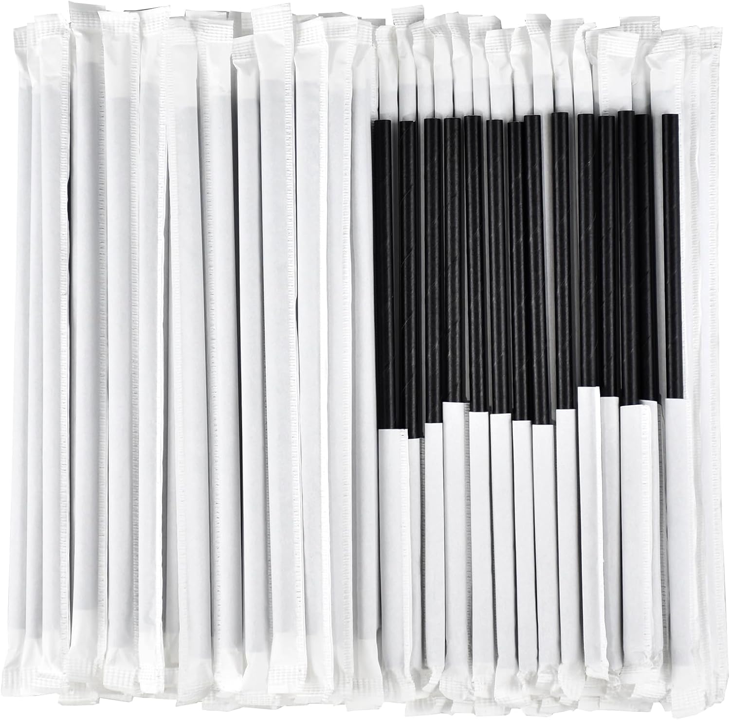 Black Paper Drinking Straws Bulk Individually Wrapped - 1000 Counts, 7.75" x0.24" - For Cocktail, Coffee, Bars and Restaurants