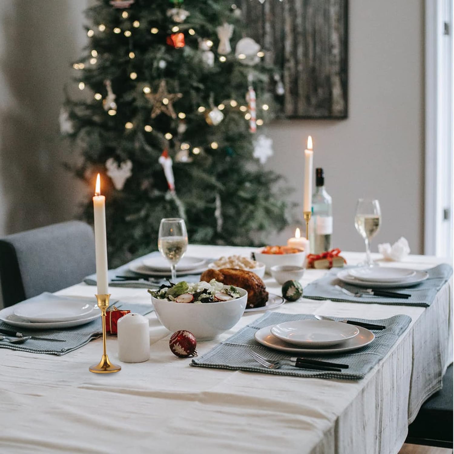 - 👍【Sturdy and Stable Brass candlestick holders】Made of solid, durable, high-quality aluminum alloy material,this candlestick holder is durable and sturdy enough to hold tall taper candles. Each Gold candlestick holder set can fit 3/4 inch and 7/8 inch small pillar candles as well as LED cone candles to match your dining table decor.It provides a stable base for your candles,ensures stability and longevity for your candles.