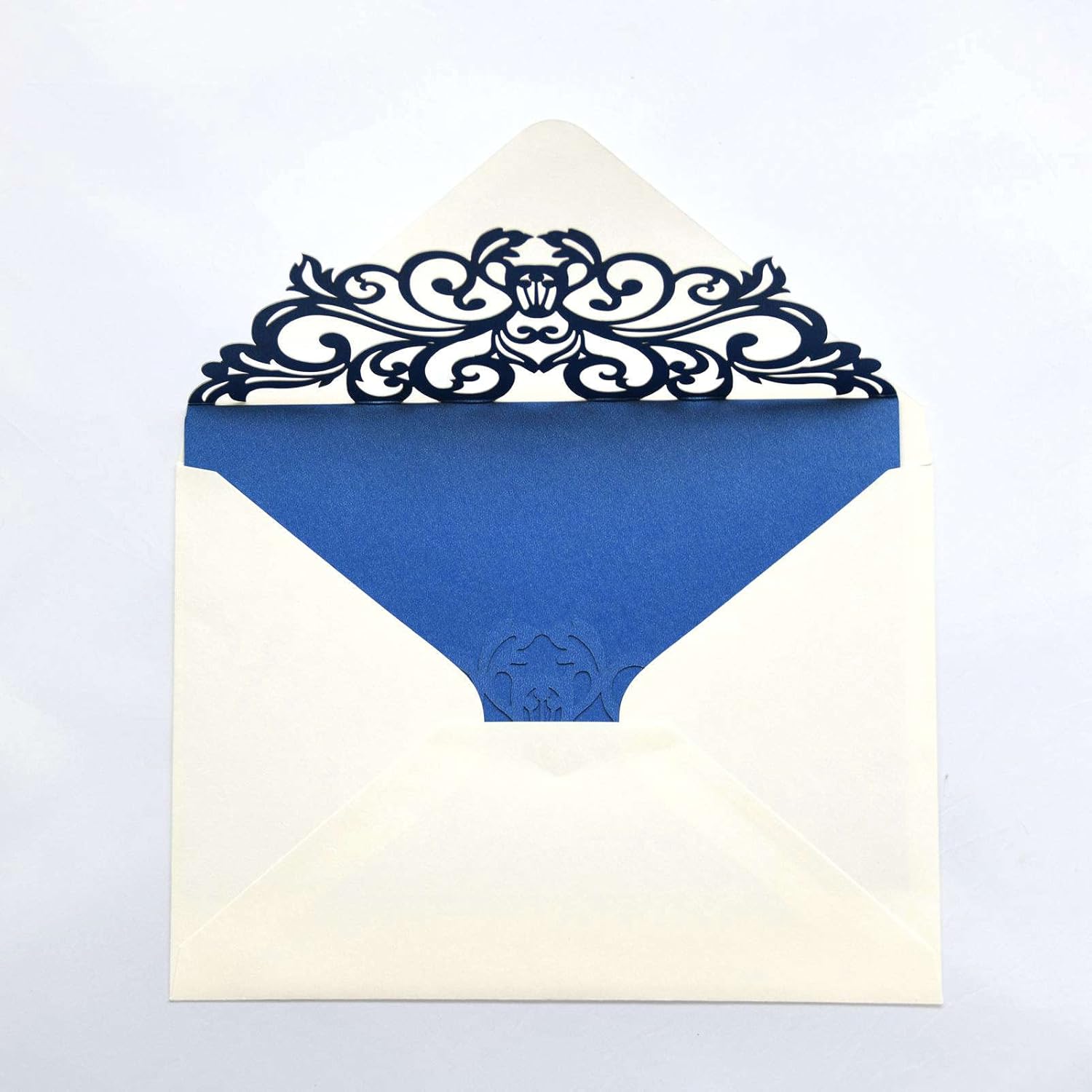 25PCS Royal Blue Laser Cut Wedding Invitations Cards with Envelopes,Blank pearl royal blue