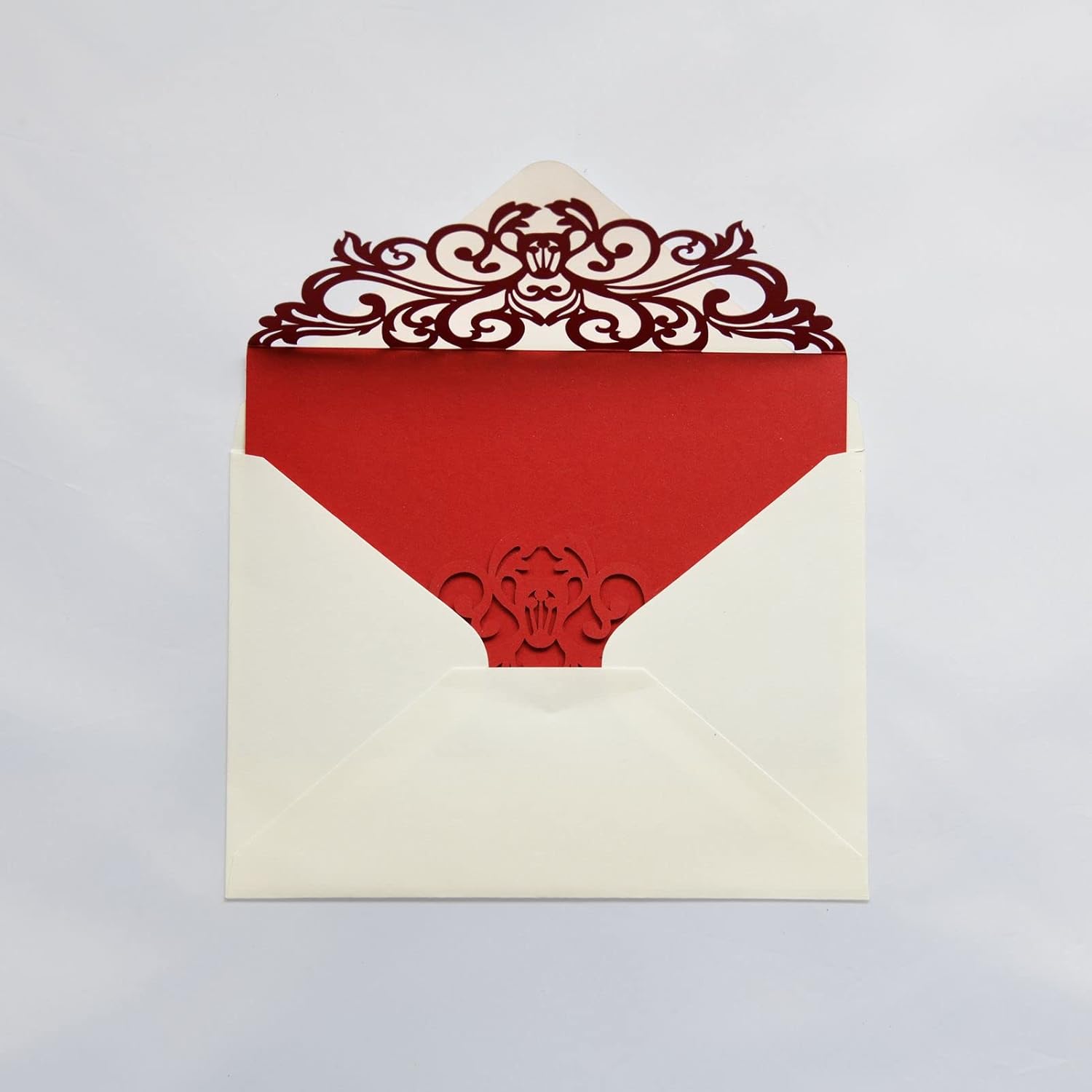 - Package including: 25 * Laser Cut Invitations Pockets + 25 * Cream Envelopes+25 * Blank Inner Sheets +25 * Ribbons