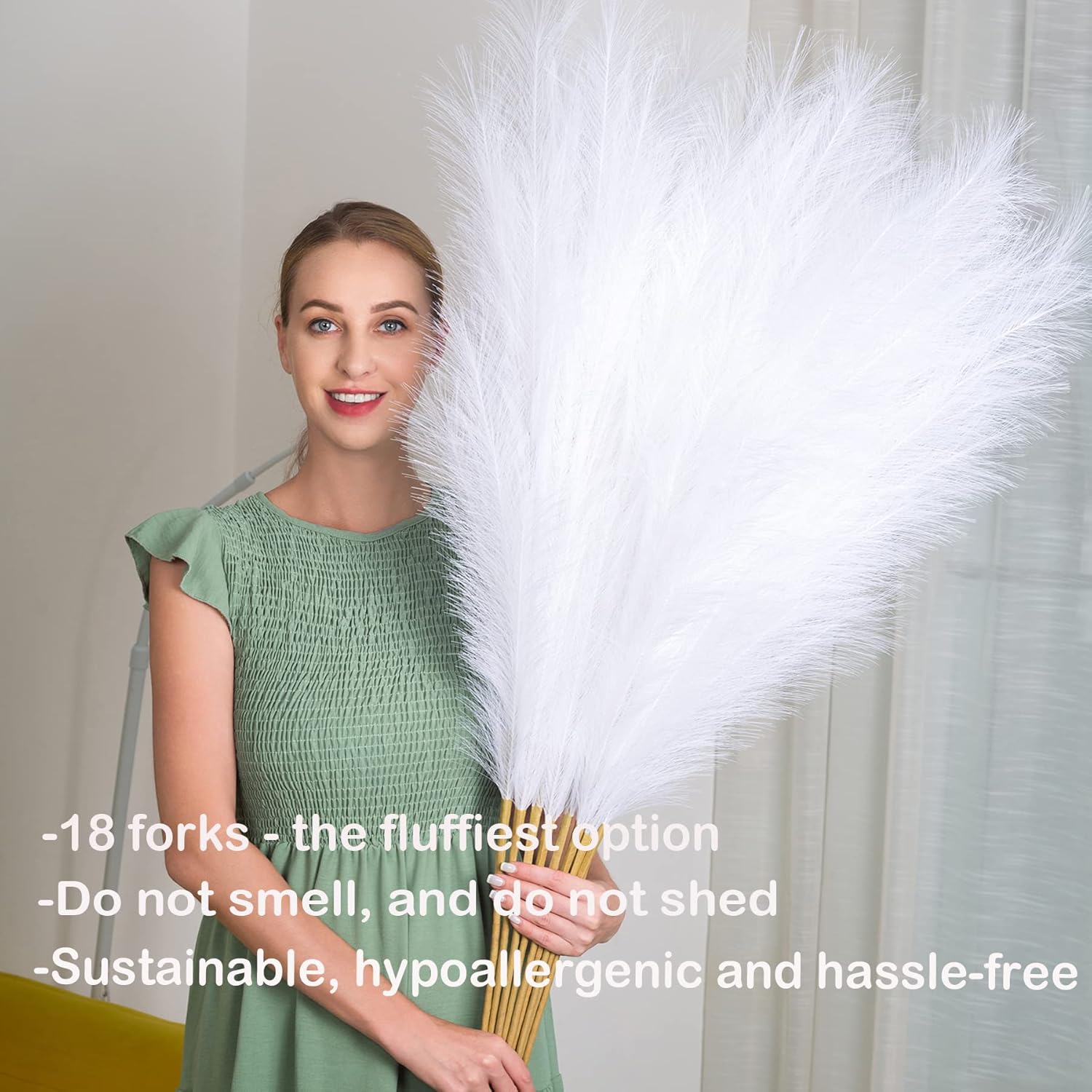 - Great Alternative for Real Pampas: Unlike dried pampas grass, our pompous grass does not shed like the real version, the long fibers on each stick are tied so strongly that they do not fall off. No allergens, no smell, without the maintenance cleaning and will last a long time