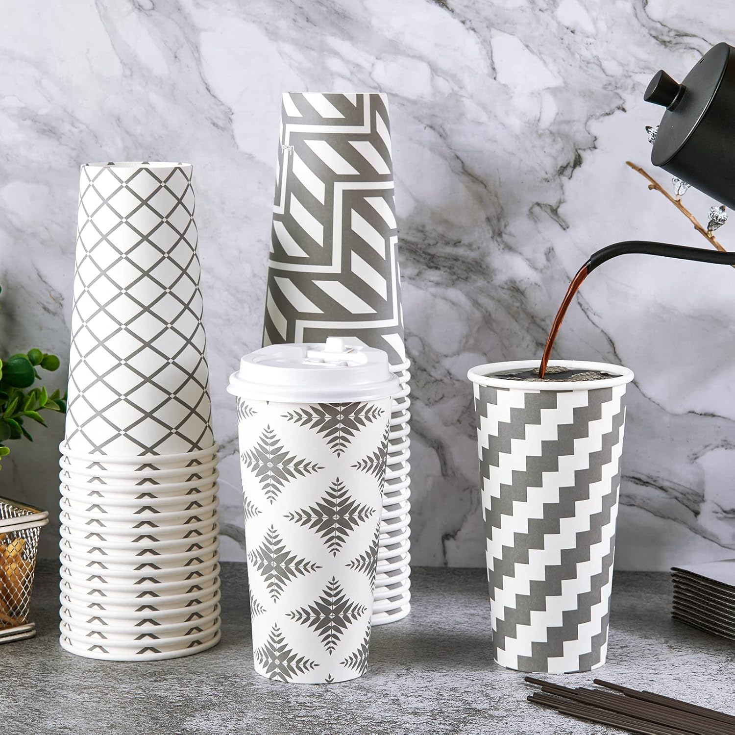 - Exquisite Design: Each hot paper coffee cup is printed with a premium grey color to give a unique and sophisticated look to the disposable coffee cups, these sets of paper cups are ideally styled to suit any occasion and make your use more enjoyable
