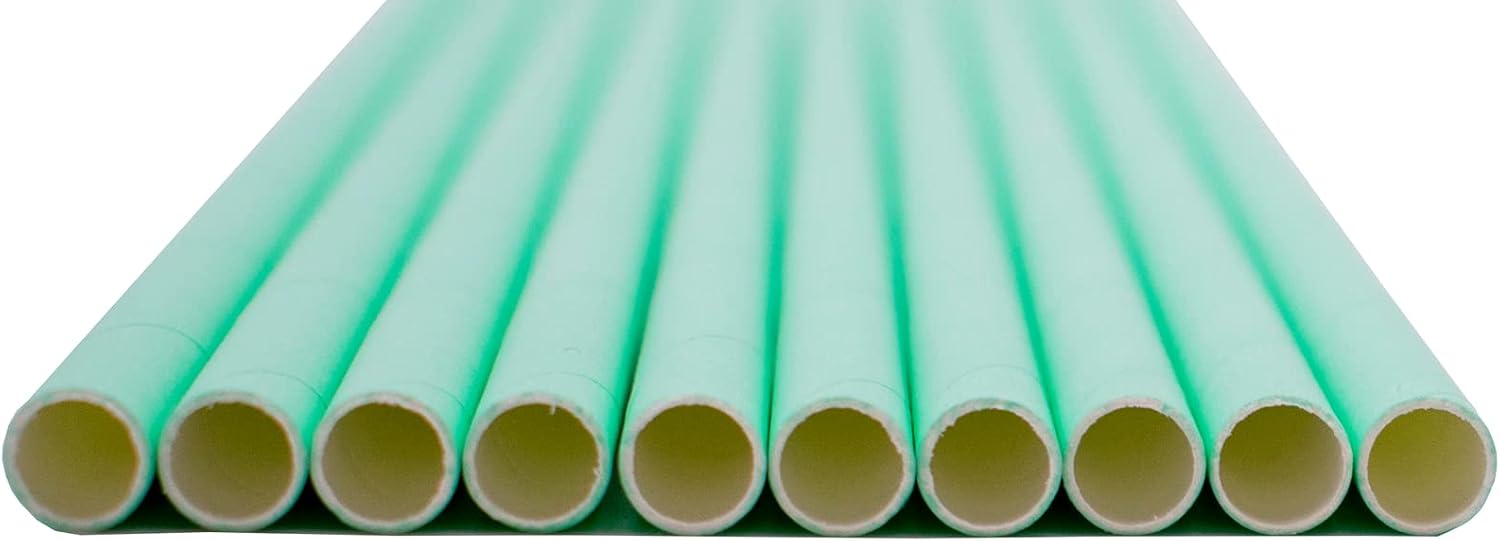 - Pack of 300 Pastel Green wrapped paper straws that are 7.75” long and have a diameter of 0.25”. Made with 4-ply paper which translates into thicker and more resilient straws that won’t wilt or change shape in both hot and cold drinks.