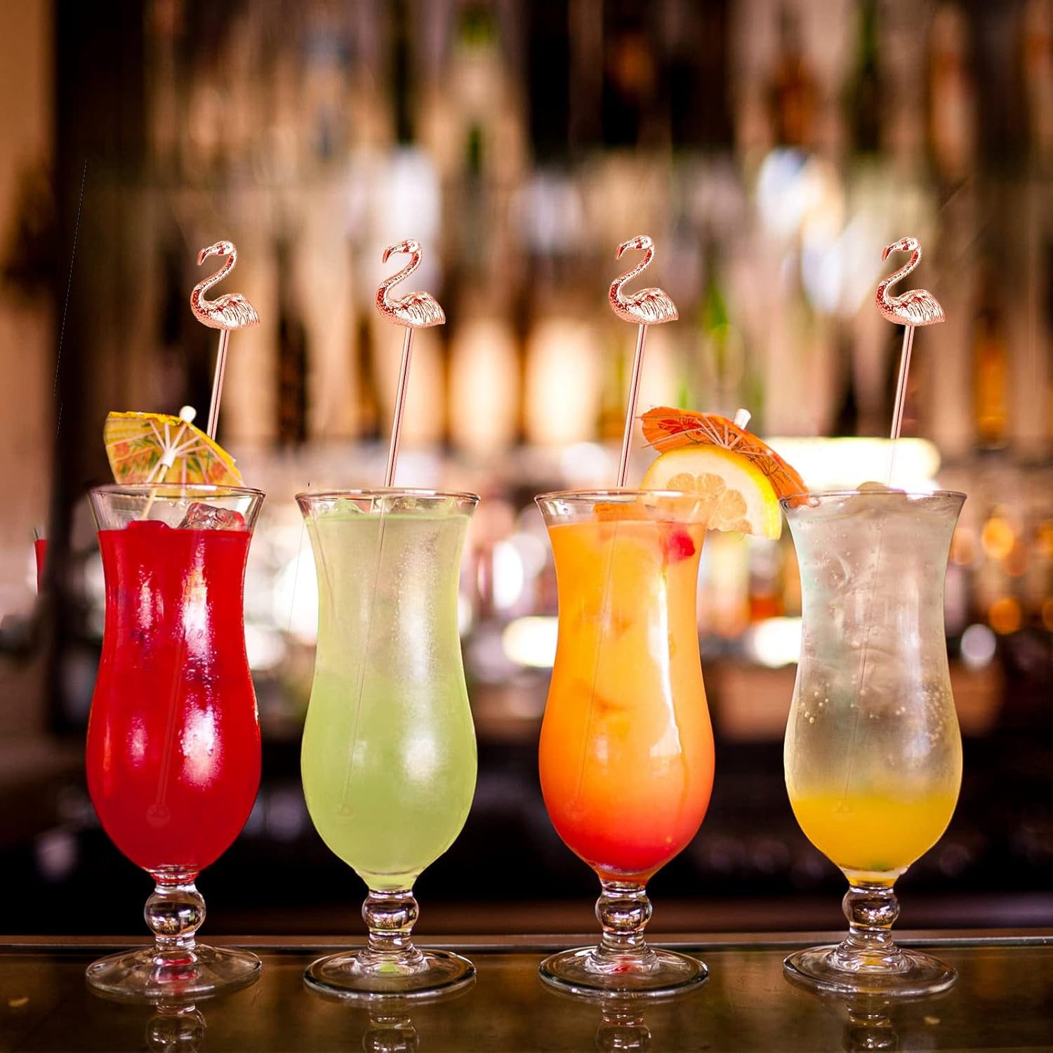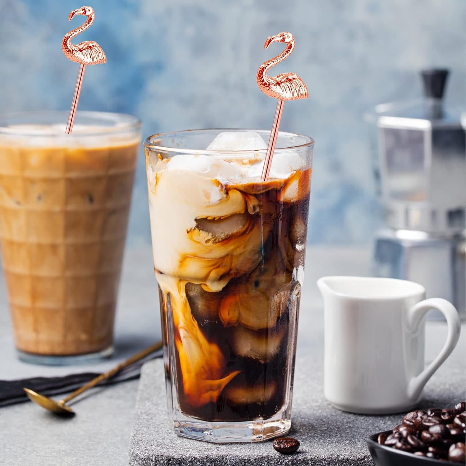 4 Pcs Flamingo Cocktail Stirrers Swizzle Sticks Stainless Steel 7.28" Coffee Stir Sticks with Decor Top for Mixing Cocktail, Hot Cocoa, Creamer, Rose Gold