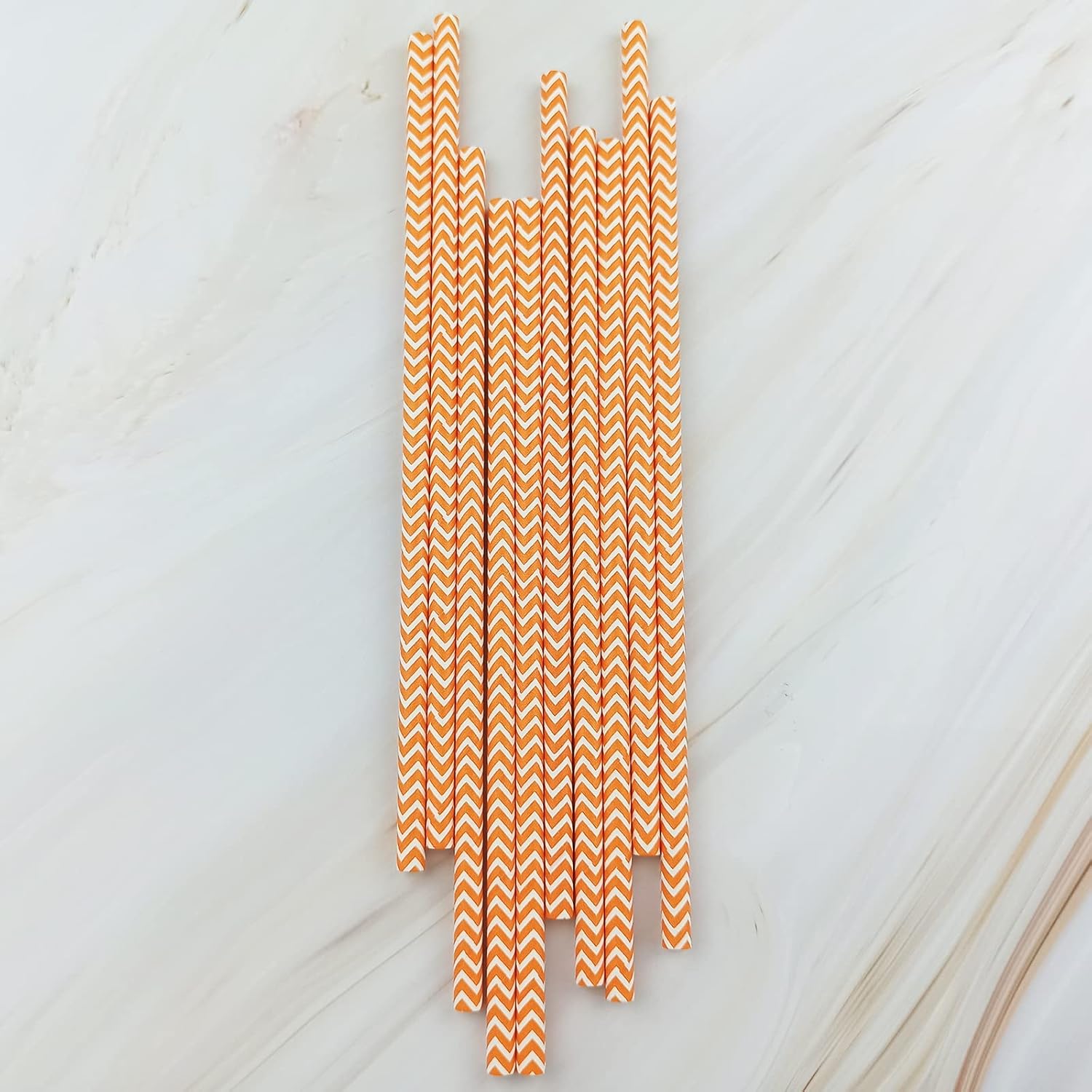 - 🎀Includes 100 pcs Orange Waves Striped party Paper Straws.