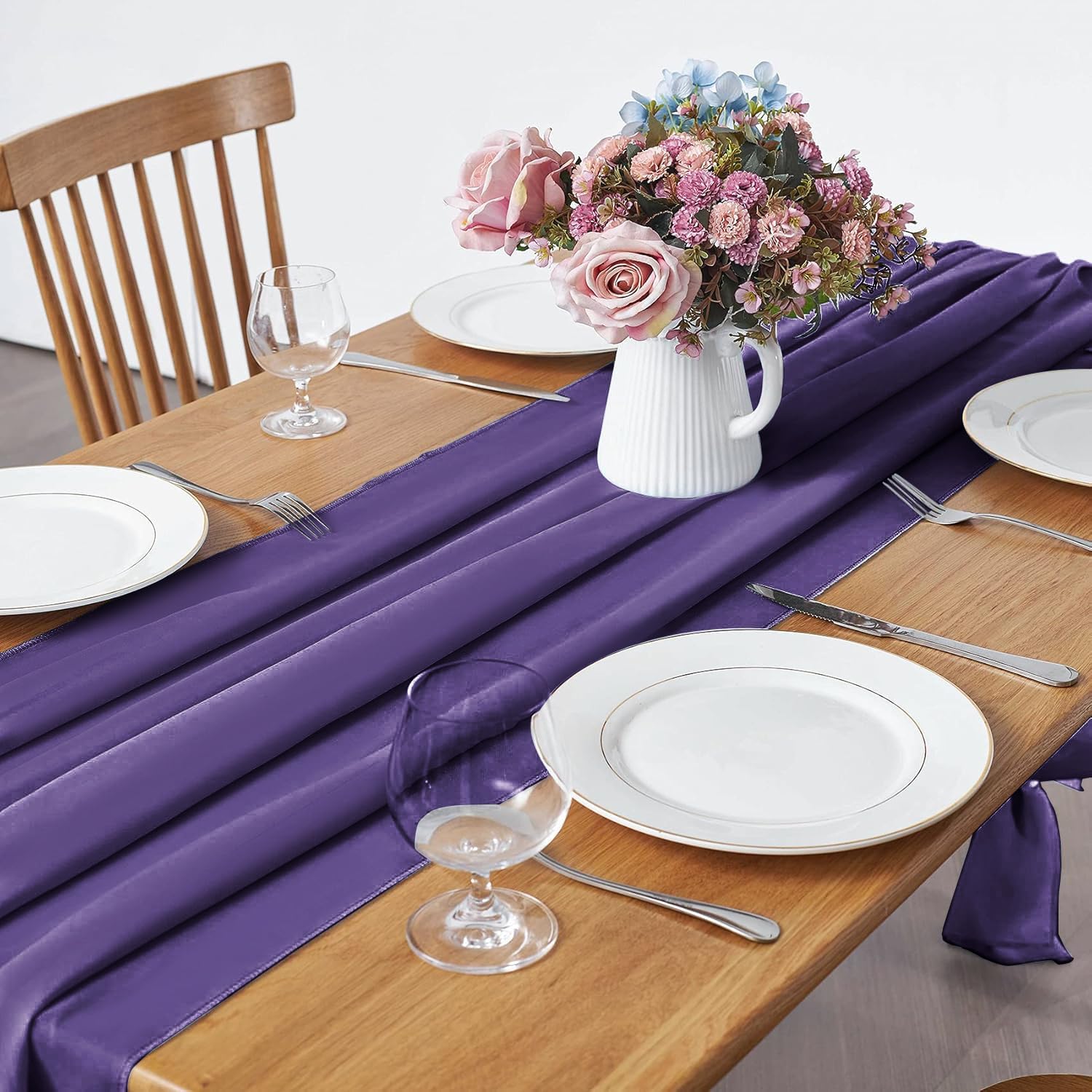 2 Pack 10Ft Chiffon Purple Table Runner Sheer 29x120 Inch for Romantic Wedding Decor Bridal & Baby Shower Birthday Rustic Party Decoration