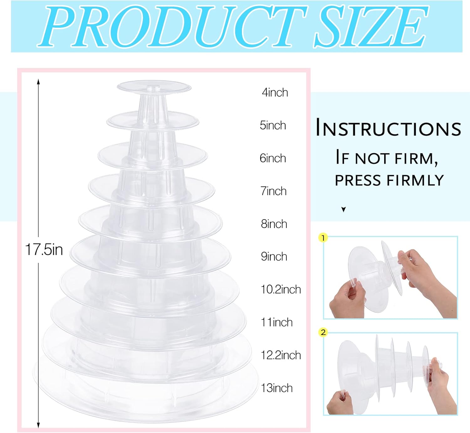 - Suitable Size: with 10 tiered bases design, so our clear cupcake holders have different sizes on them, the height of them is about 44 cm/ 17 inches, and the diameter is about 4 to 9 inches, large capacity and suitable size allow you to choose according to your needs