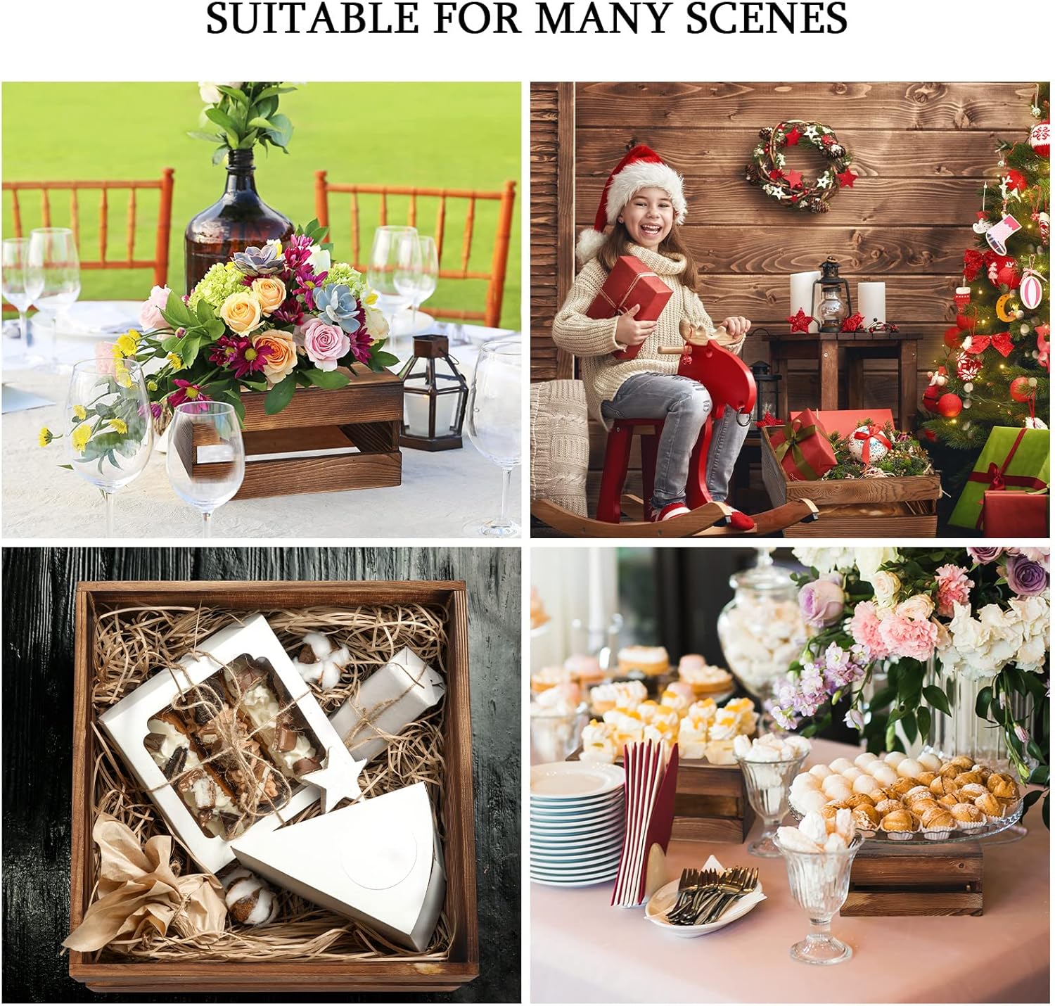 Sieral 4 Pieces Wood Cupcake Display Stand Decorative Dessert Appetizer Cake Stand Risers Wooden Crate Rustic Cake Risers for Storage for Party Christmas Halloween Wedding Decor(Burnt Wood)