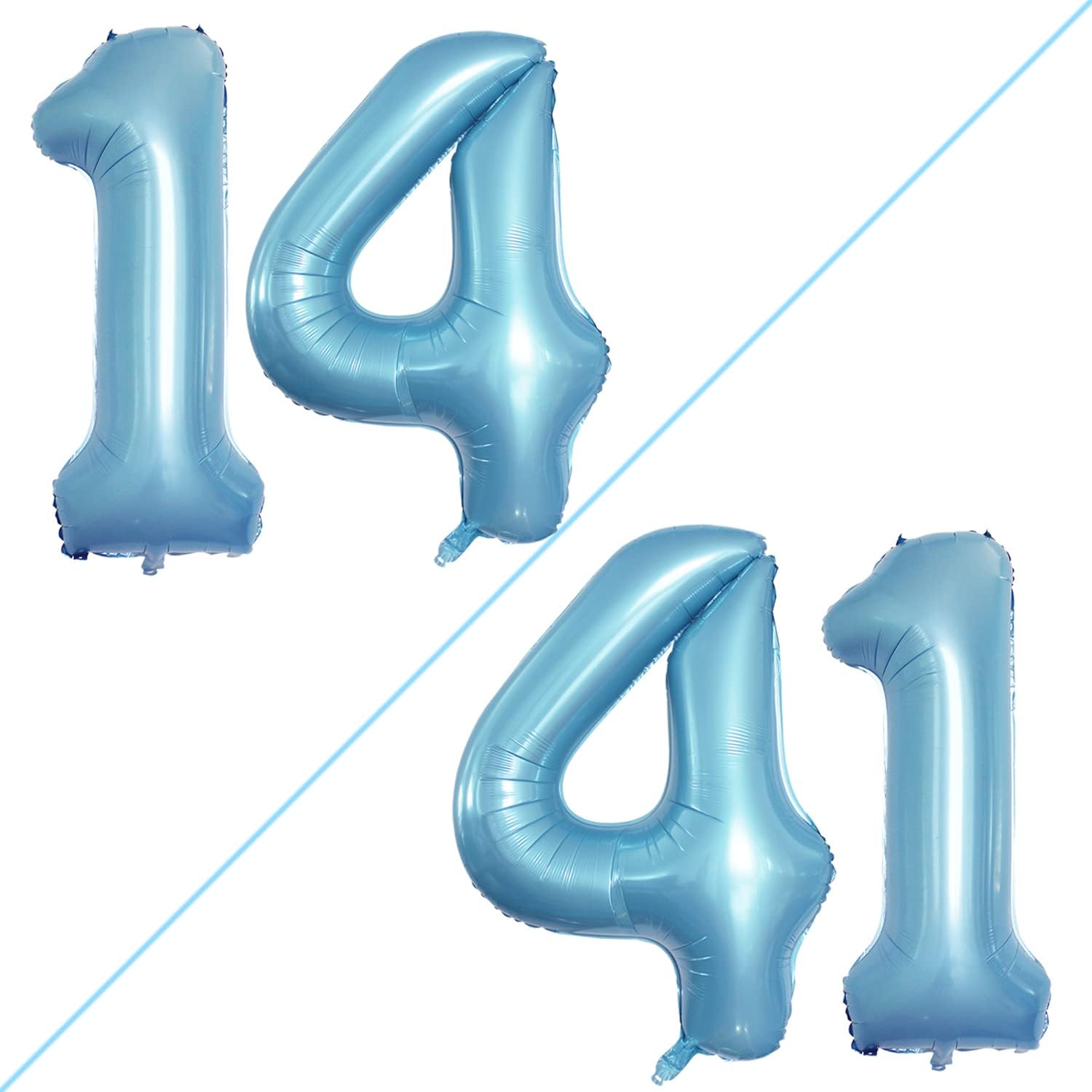 GOER Number 14 Balloons for 14th Birthday Sweet 14 Party Decorations,42 Inch Jumbo Foil Helium 41 Balloons for 41st Birthday Party Decoration (Light Blue)