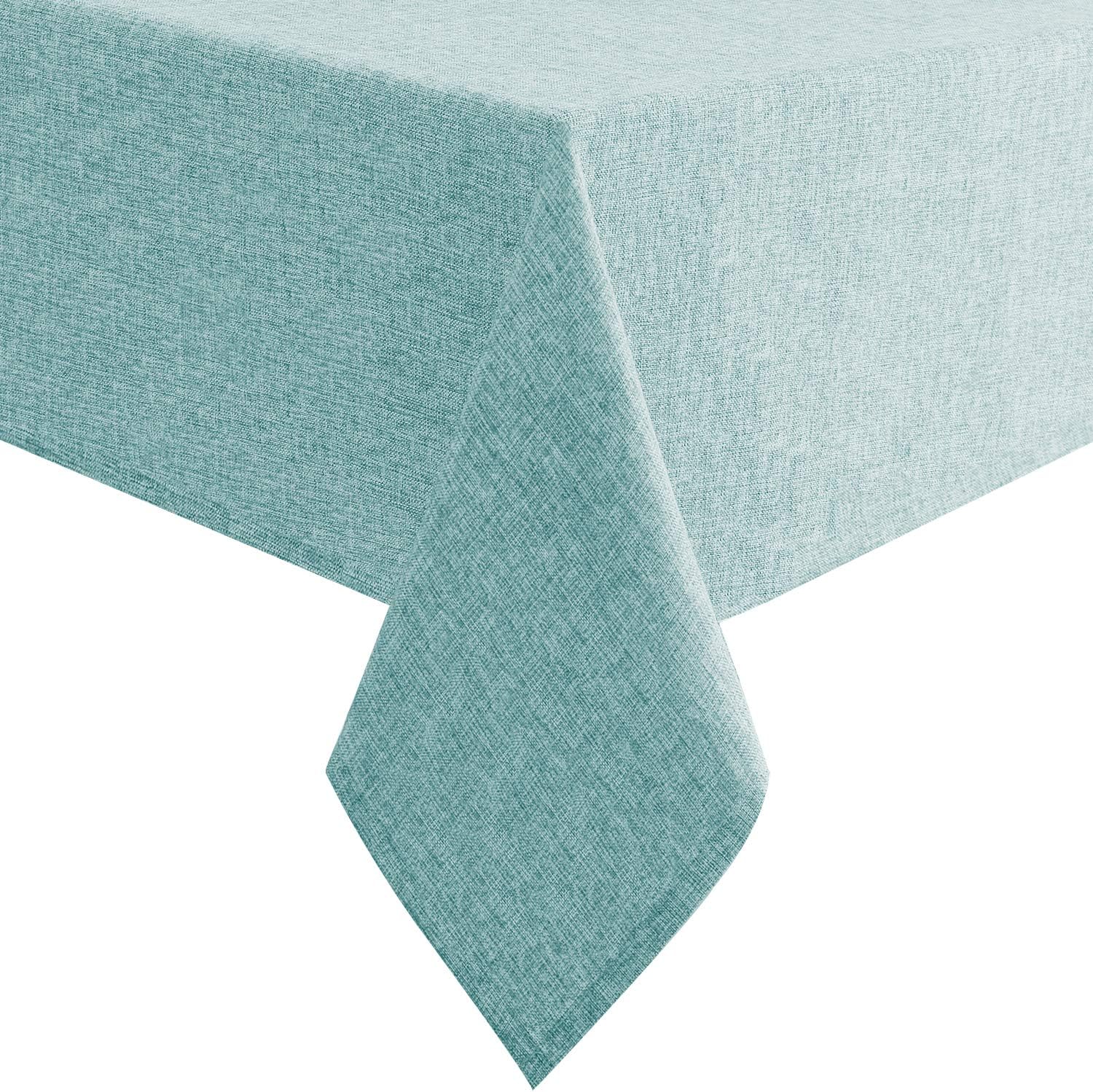 Hiasan Faux Linen Rectangle Tablecloth - Wrinkle and Stain Resistant Washable Table Cloth for Kitchen Dining Room Holiday Table Cover for Dinner, Aqua, 70 x 120 Inch