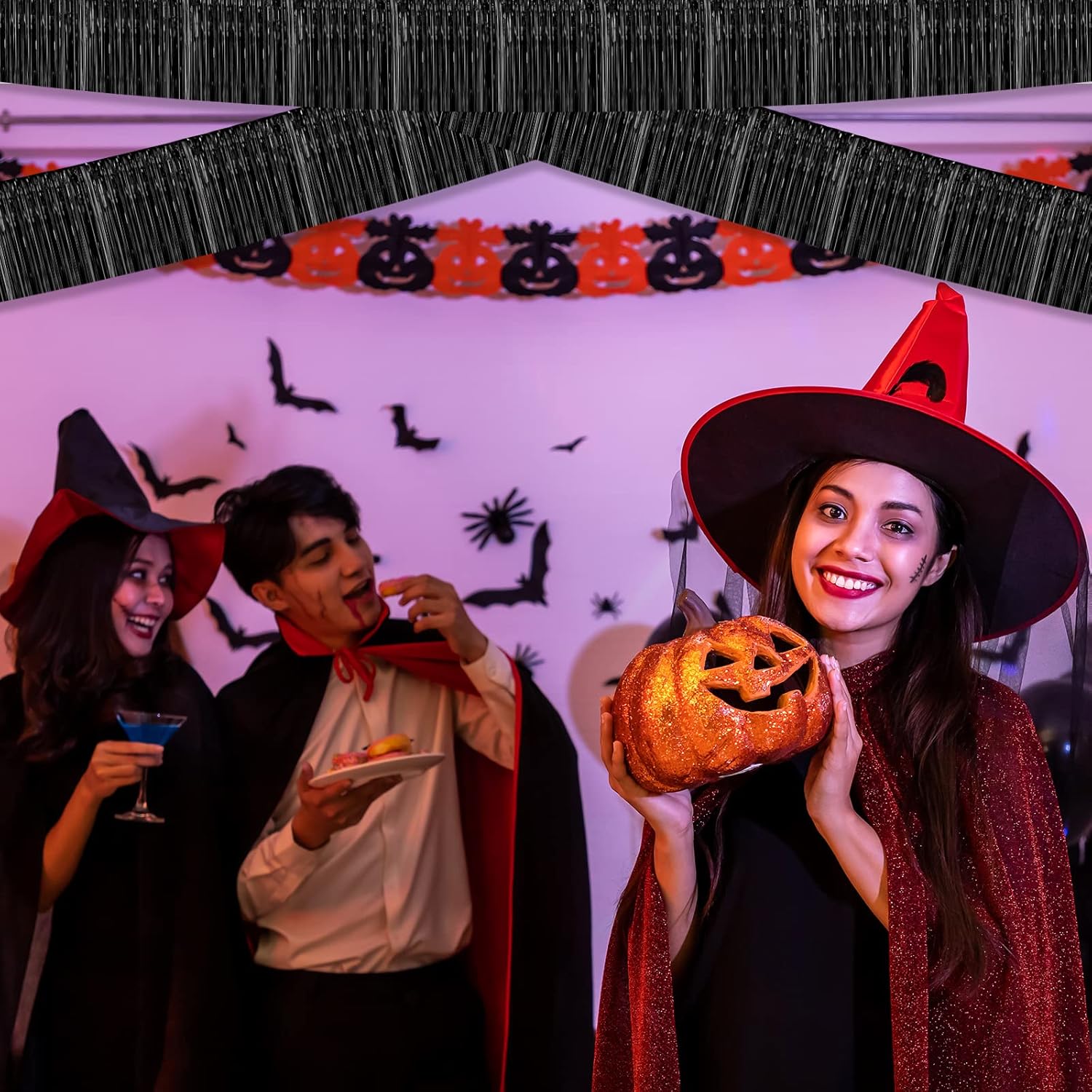10 Pack 10 Feet Black Foil Fringe Garland Metallic Tinsel Streamers Banner Wall Hanging Curtain Backdrop for Parade Floats, Bachelorette, Wedding, Birthday, Halloween, Christmas Party Decorations