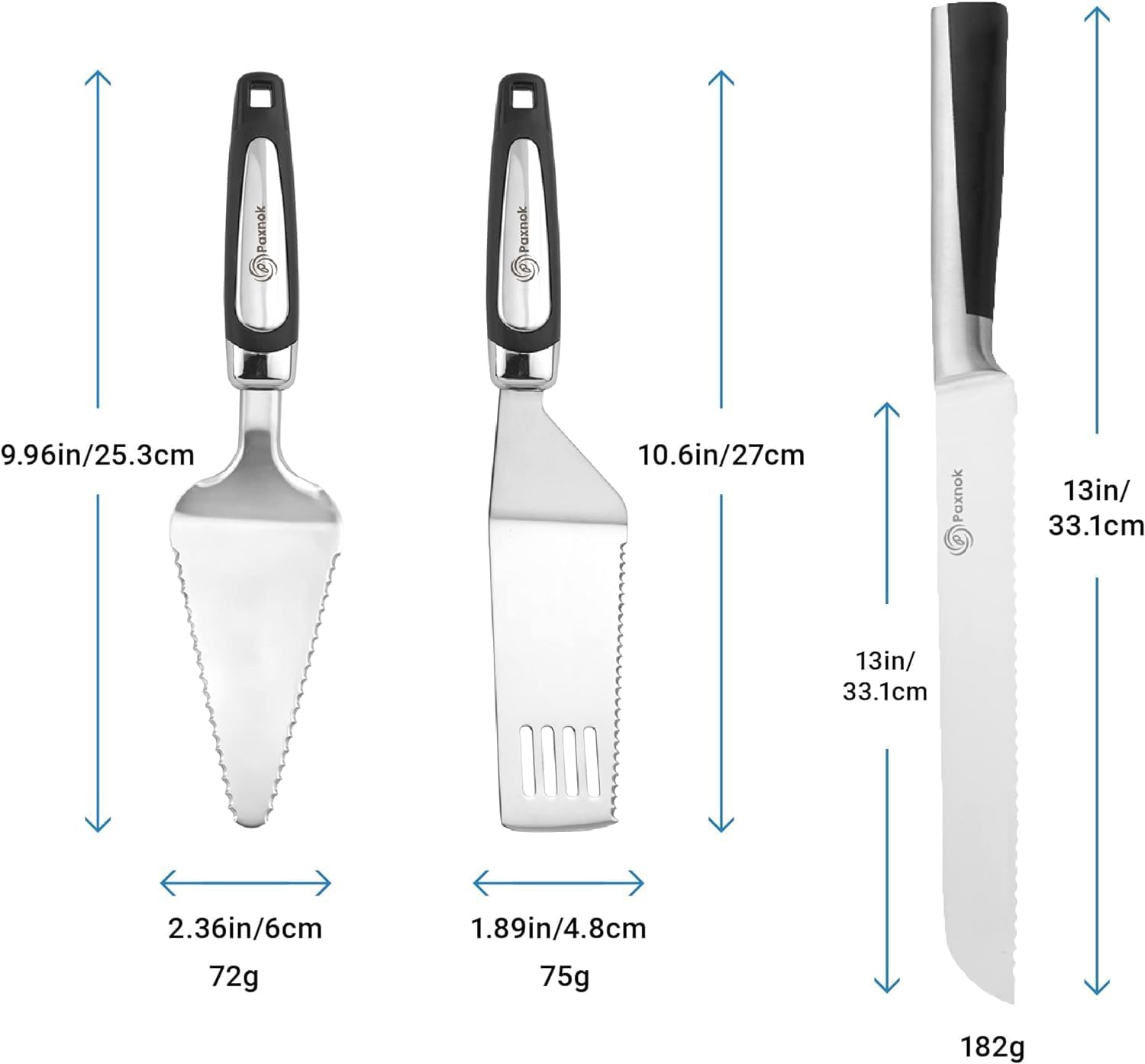 - THE PIE SERVER SET, CAKE SERVER SET AND BREAD KNIFE: Includes double serrated pie spatula server, serrated cake spatula server, and bread knife making it a versatile kitchen tools whether it's a pie, birthday cake, wedding cake, anniversary, pizza, or any special occasion, our cake set is the perfect addition to your kitchen and will help you create unforgettable moments with your loved ones.