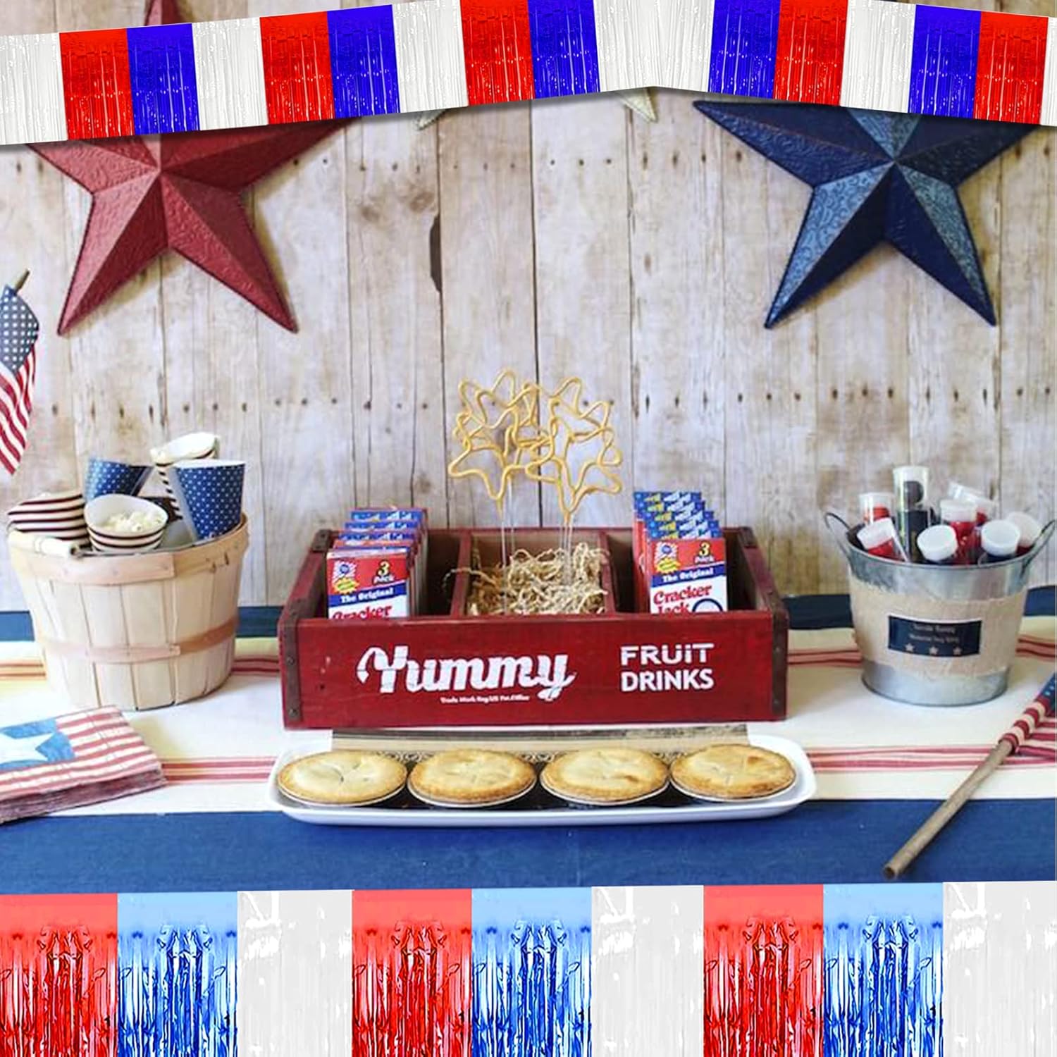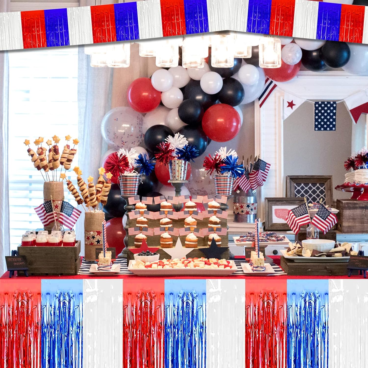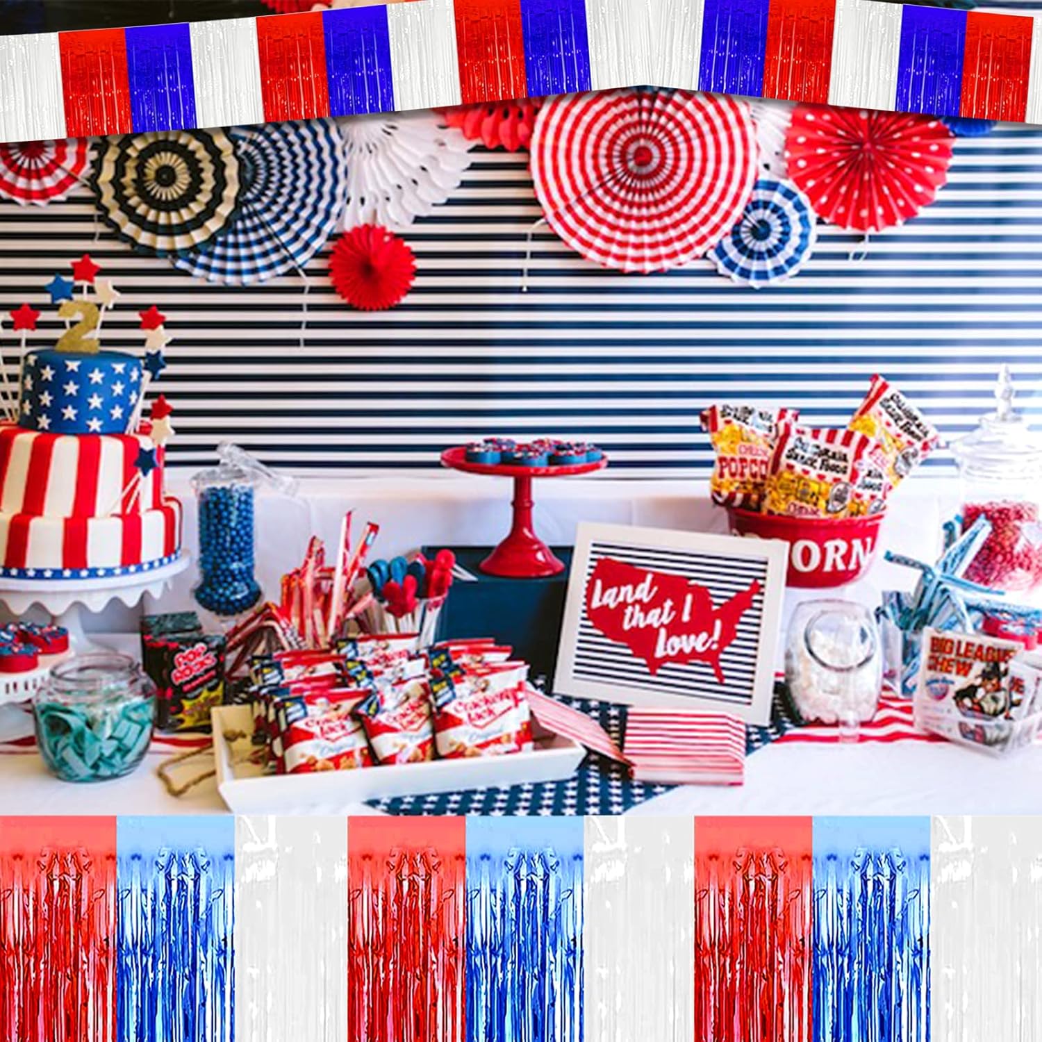 10 Pack 10 Feet Foil Fringe Garland Metallic Tinsel Streamers Banner Wall Hanging Backdrop for Parade Floats, Bachelorette, Wedding, Birthday, Independence Day Party Decorations(Red Blue White)