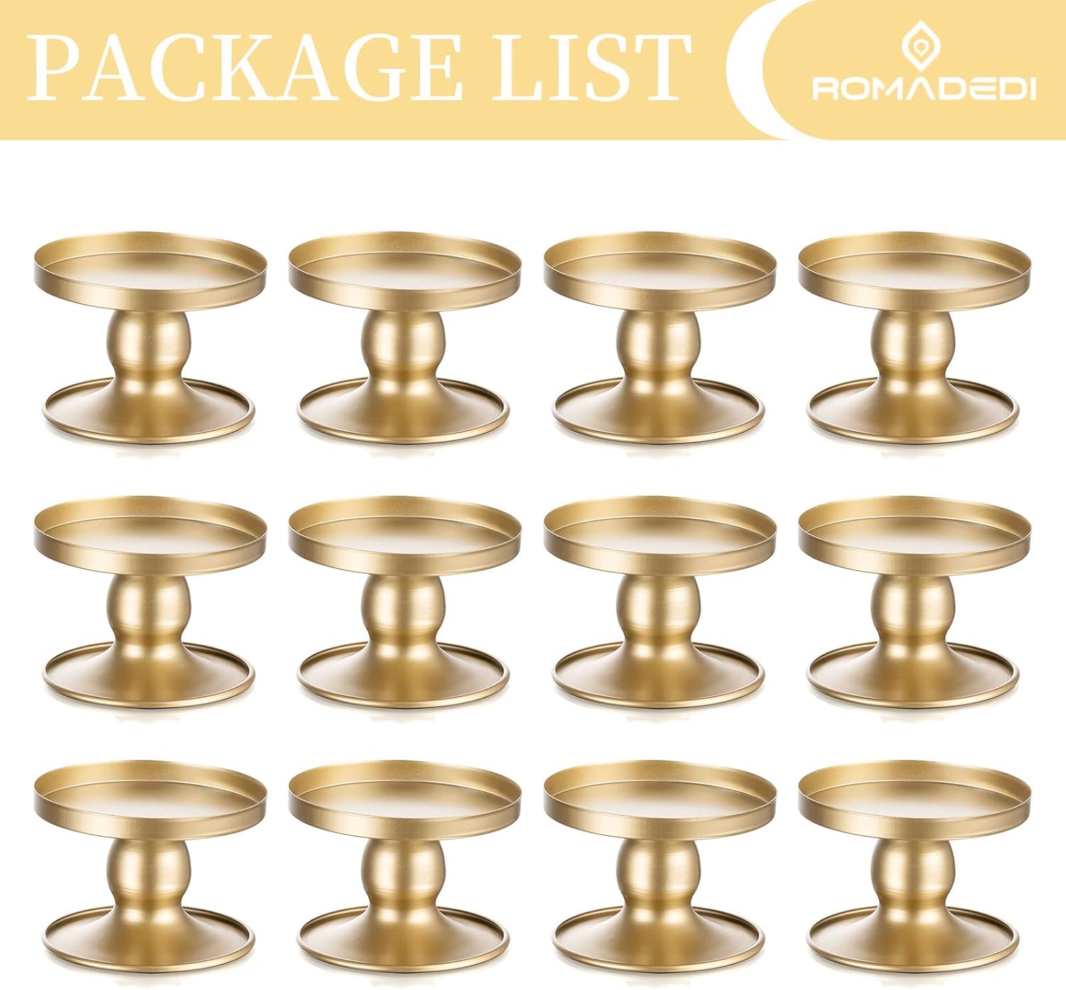 Candle Holders for Pillar Candles, Romadedi Gold Pillar & Taper Candle Holder, Small Metal Candle Stick Candle Holder for Wedding, Dining Room Table Centerpiece, Holiday Decor, 12 Pcs