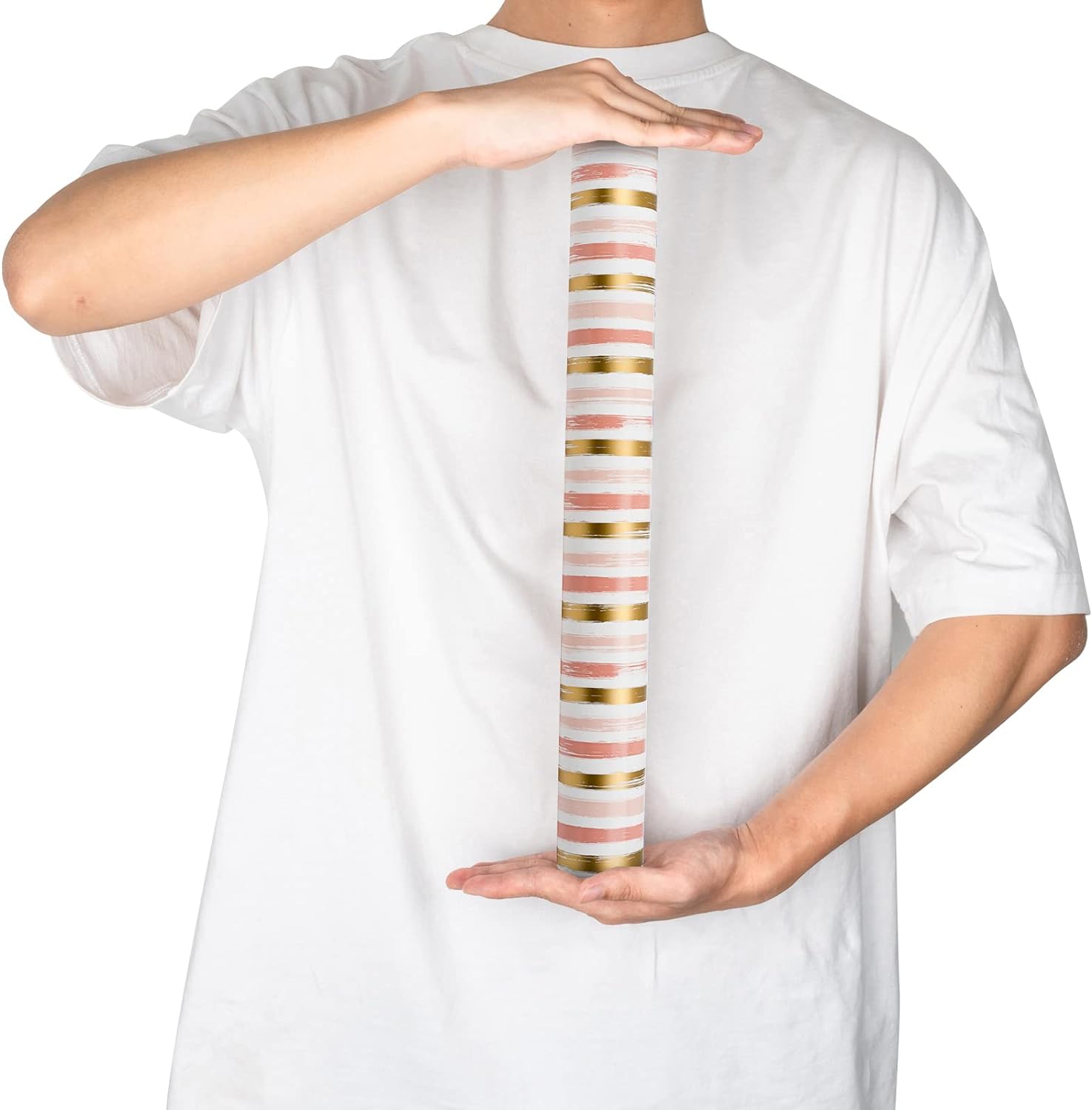 - REVERSIBLE: Pink and gold lines design printed on one side, solid peach pink printed on the reverse. Two different designs make unique and varied gift presentations easy