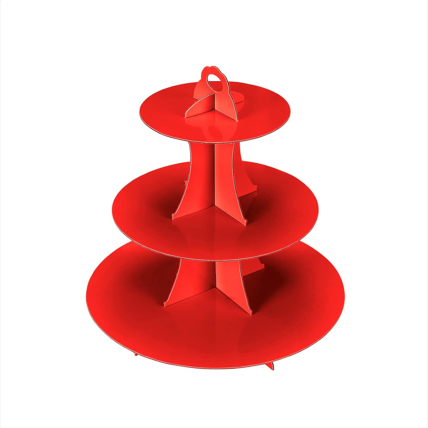 2Pcs 3-Tier Cupcake Stand, Cake Stand holder, Tiered DIY Cupcake Stand Tower for Dessert Table Displays, Birthday Theme Party Favors Decoration, Floral Tea Party, 12" W x 12.8" H, Red