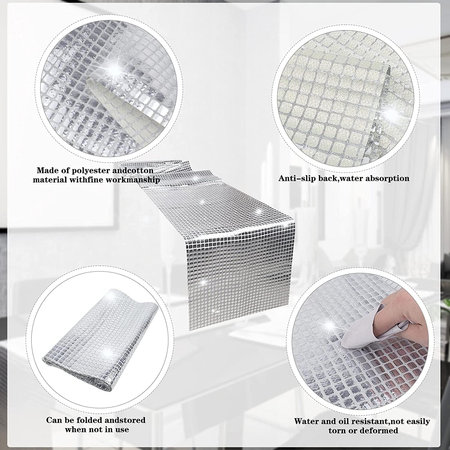 - Care Instruction: the silver table runners for parties is reusable and washable.Do not machine wash and iron. Special materials, it is recommended to gently clean and air dry. Not easy to wrinkle.