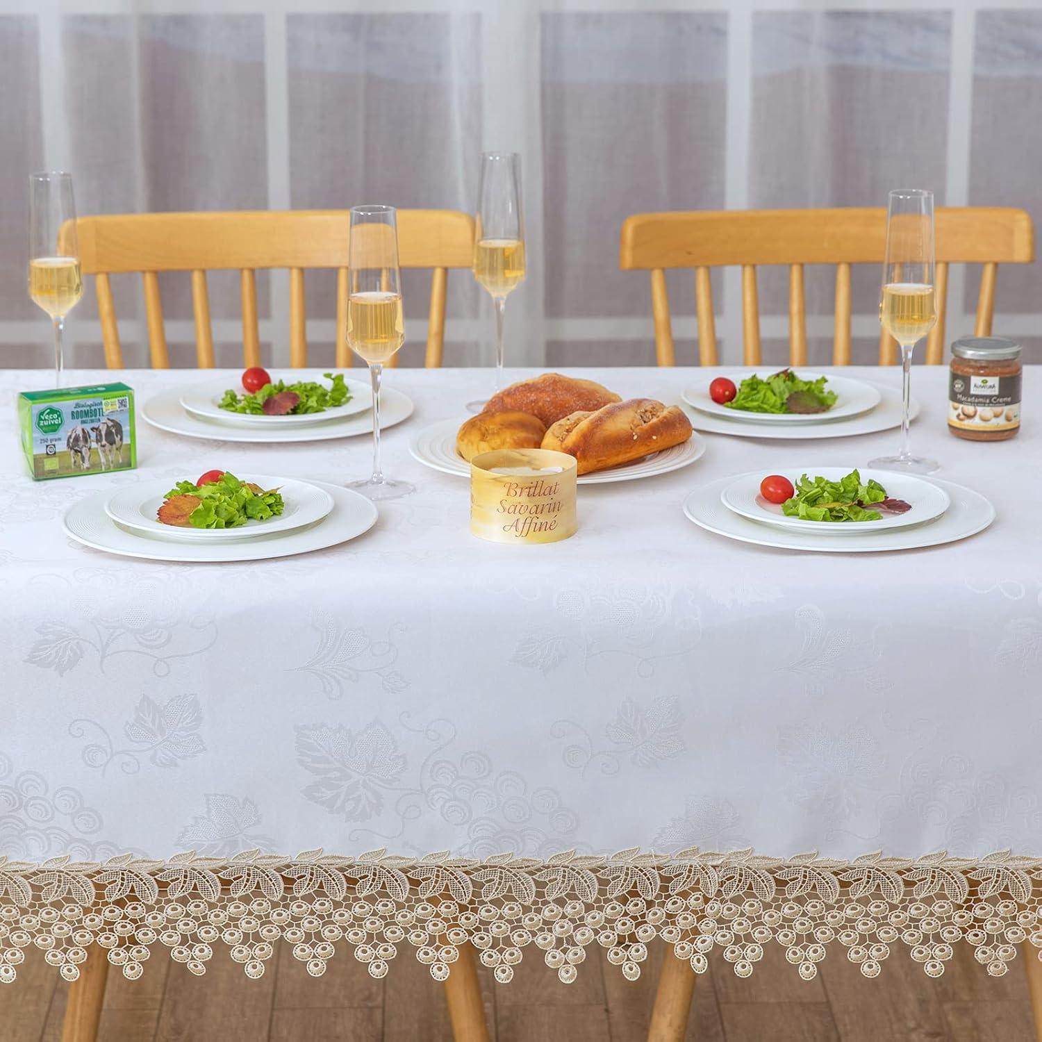 Beige lace Premium Rectangle Farmhouse Tablecloth Waterproof OilProof SpillProof AntiShrink Soft Wrinkle Resistant Decorative Fabric Table Cover Kitchen Dinning Party Wedding Banquet