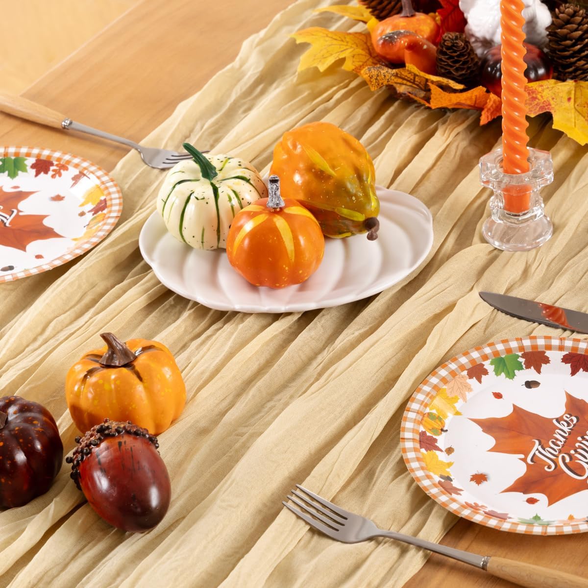 - Exquisite Wrinkled Texture : Pleating craft, bringing a country farmhouse style to your fall table decorations, esthetic and lazy, heighten the elegance of the wedding tables.