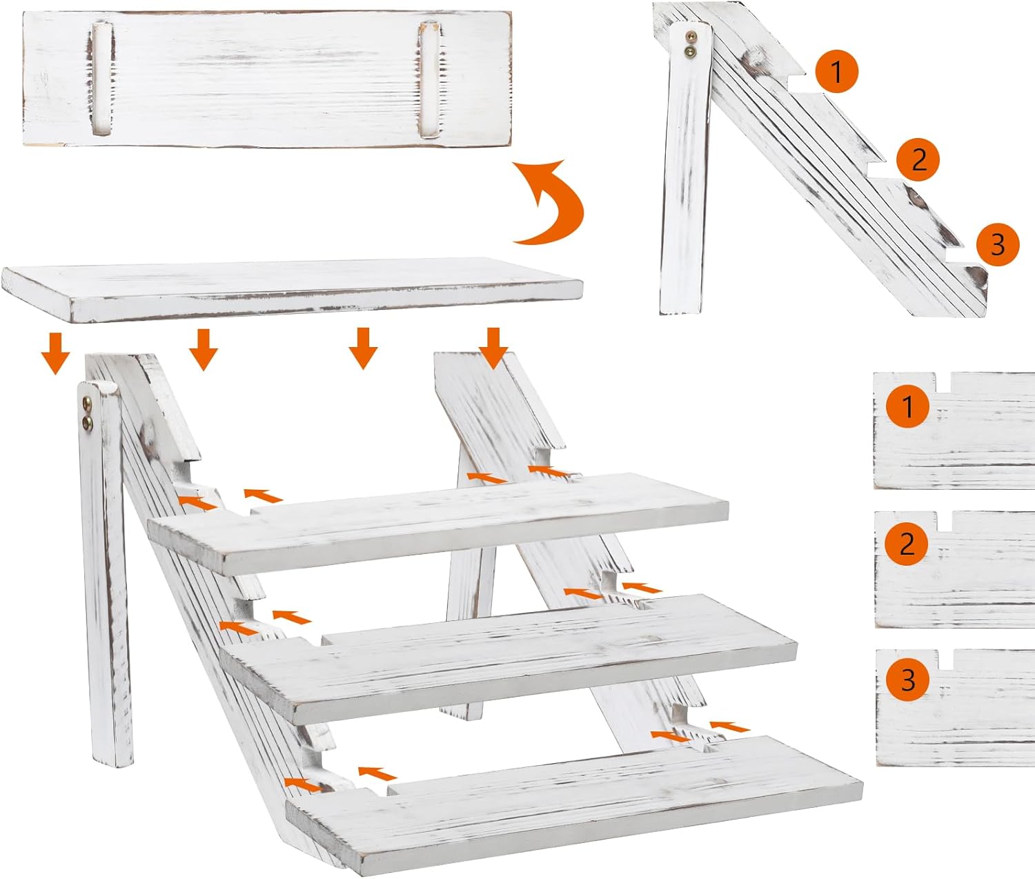 - Easy Assembly and Portability: Our Wooden Step Cupcake Stand Rustic is designed for effortless assembly and disassembly, making it highly portable. Take it with you to trade shows or outdoor camping events without any hassle