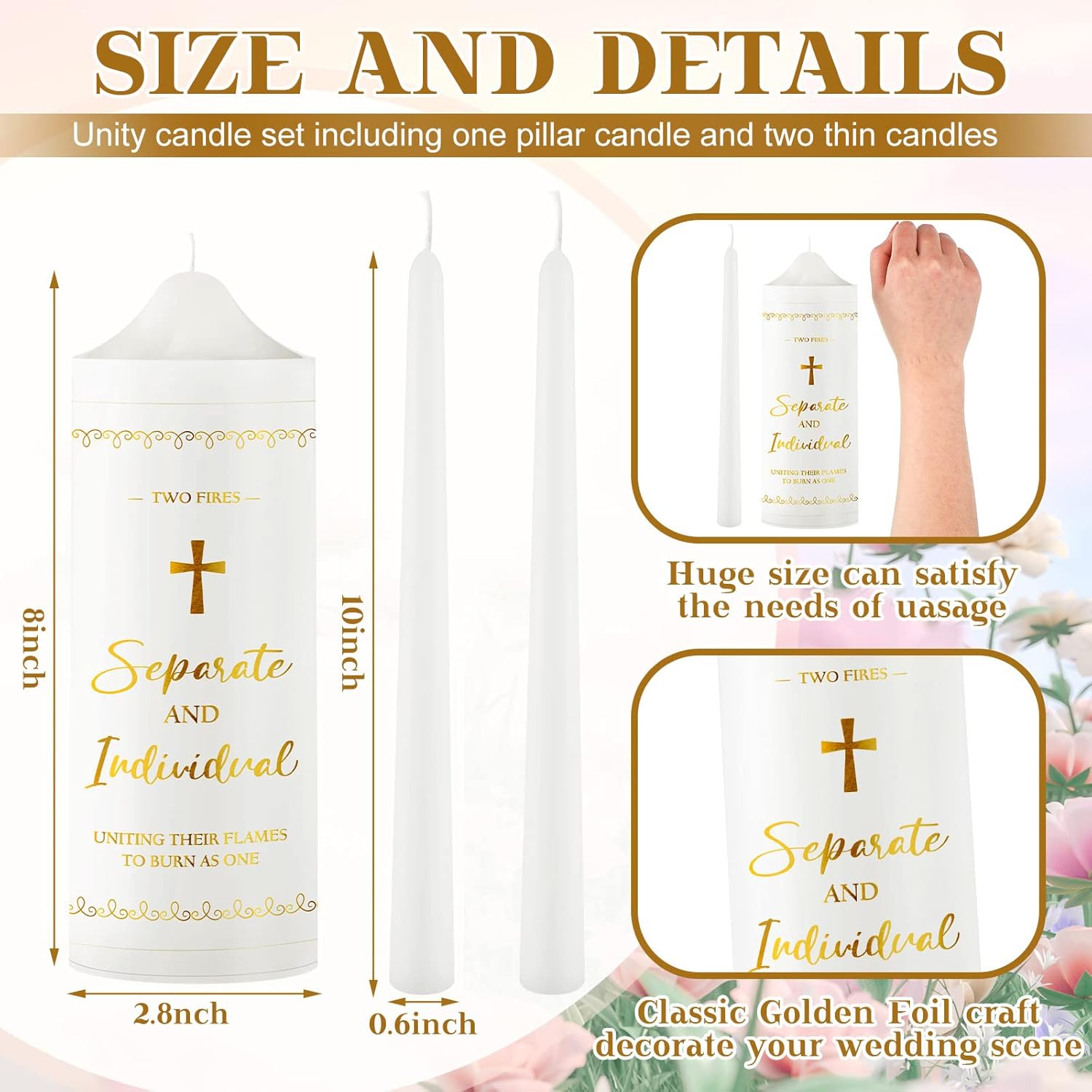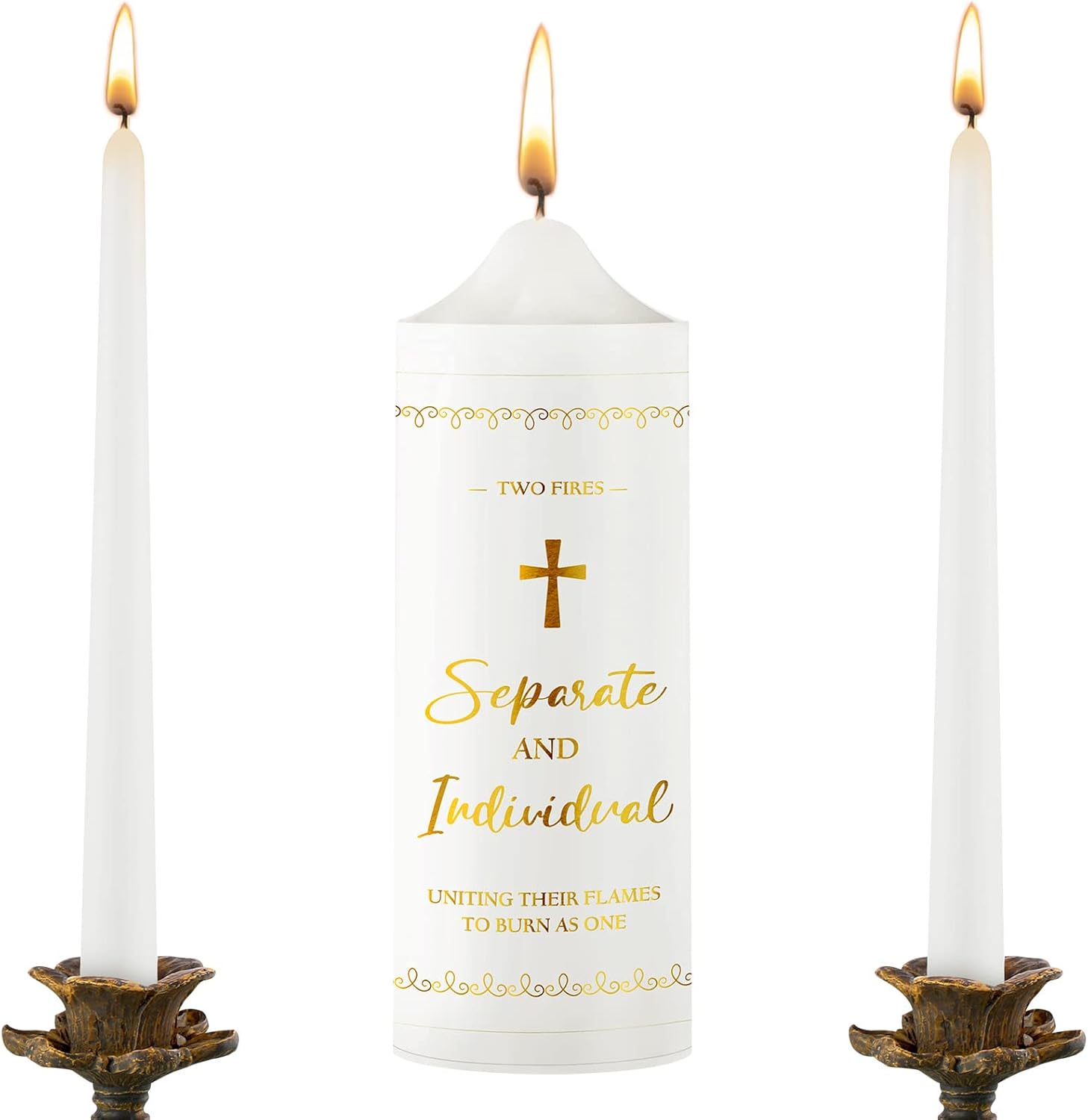 - Cross Design: the verse on the candle reads, [TWO FIRES, SEPARATE AND INDIVIDUAL, UNITING THEIR FLAMES TO BURN AS ONE], and cross elements; And the design is romantic and modern, making your table decor more eye catching