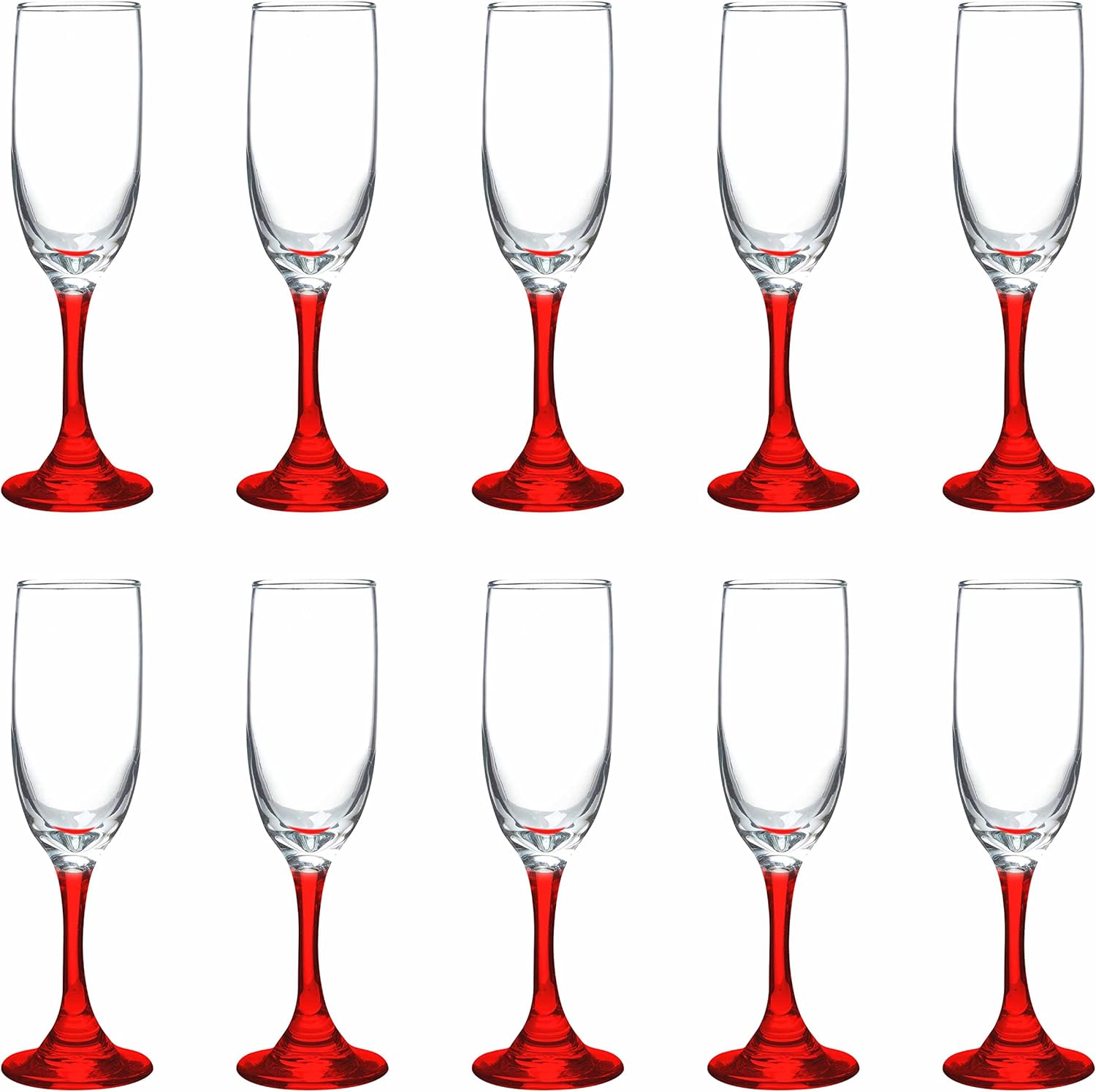 DISCOUNT PROMOS Premiere Champagne Flutes 6.25 oz. Set of 10, Bulk Pack - Elegant Drinkware for Weddings, Events, & Promotional Gifts - Red