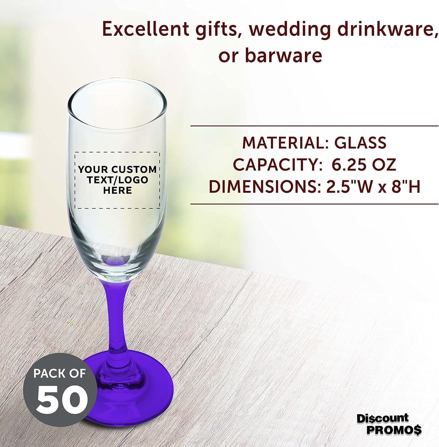 DISCOUNT PROMOS Custom Premiere Champagne Flutes 6.25 oz. Set of 50, Personalized Bulk Pack - Elegant Drinkware for Weddings, Events, & Promotional Gifts - Purple