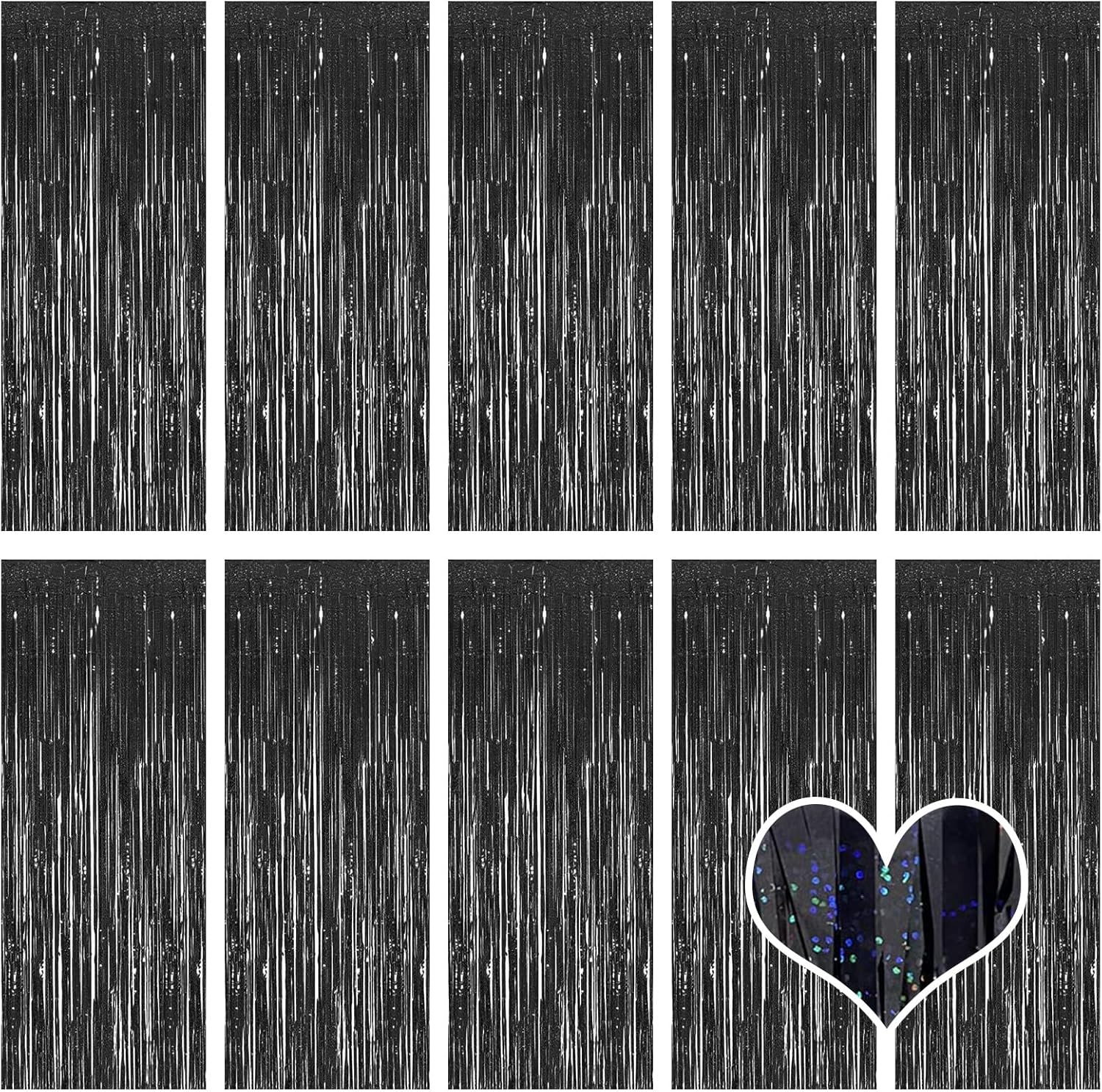 10 Pack Black Backdrop Curtain 3.2ft x 8.2ft Metallic Tinsel Foil Fringe Curtains Photo Booth Background for Birthday Party Decoration Baby Shower Engagement Wedding Christmas Decoration (Black)