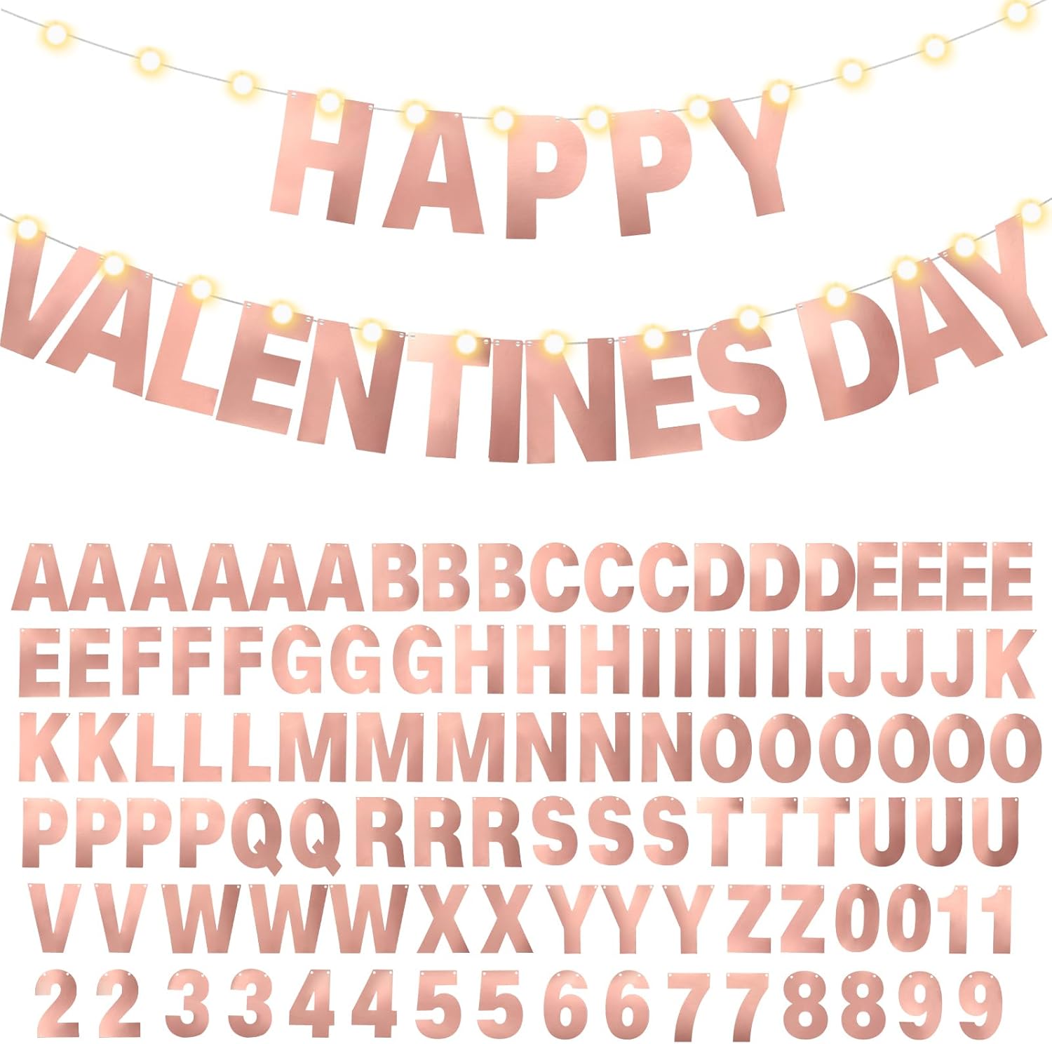 TaoBary 112 Pcs DIY Letter Custom Banner Glitter Customizable Banner Kit Including 107 Letters and Numbers 3 Rope for Valentine Birthday Party(Bright Rose Gold)