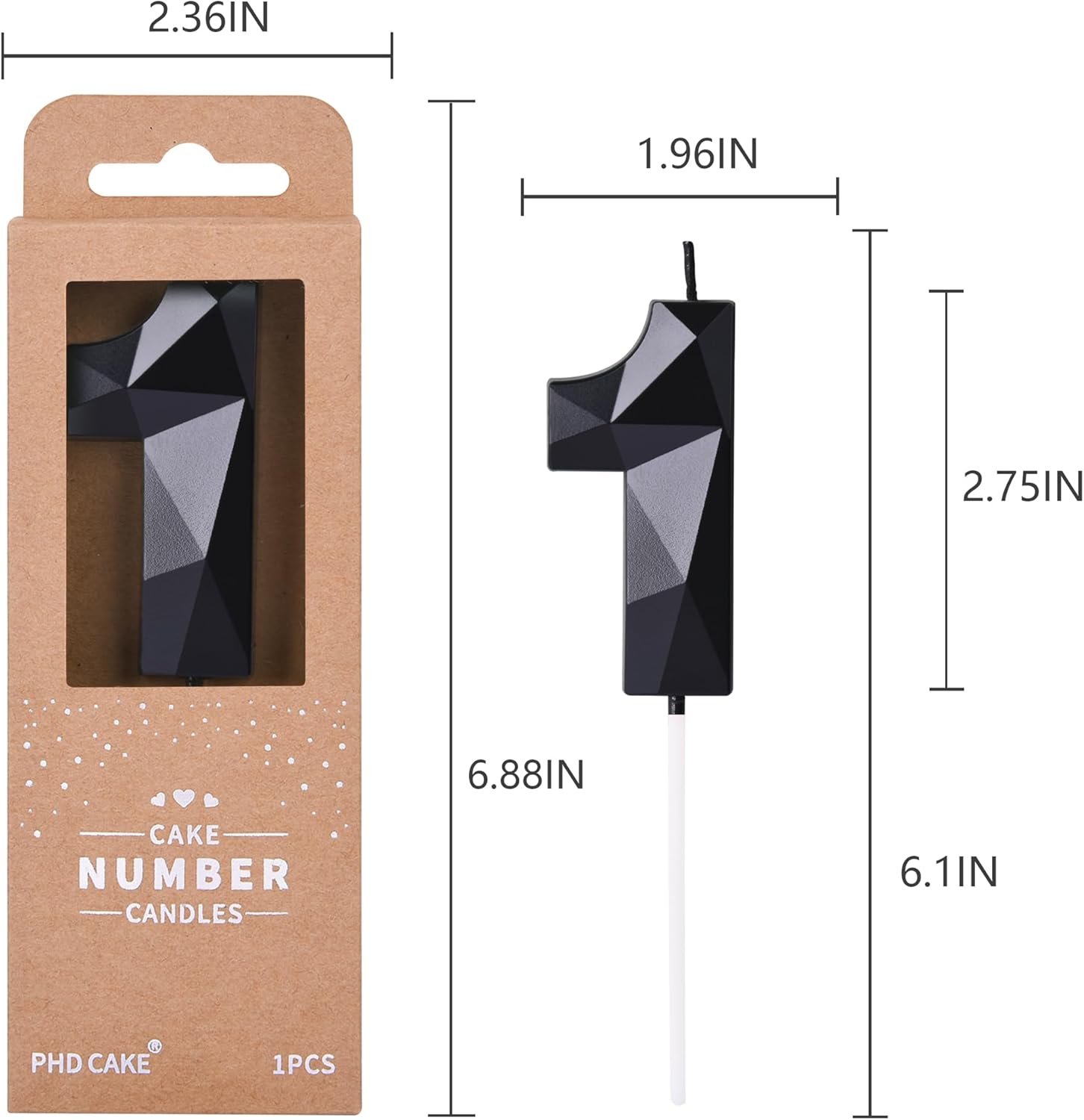 PHD CAKE 2.76 Inch Crystal Black 1 Number Birthday Candles, Black Number Candles, Cake Number Candles, Party Celebration