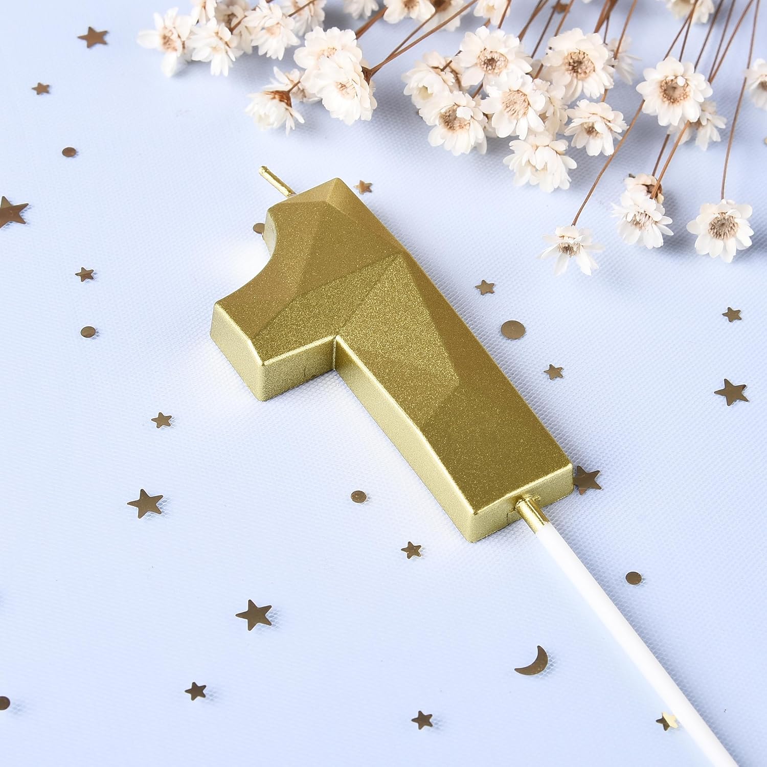 - New: 2.76 Inch Large Crystal Gold 1 Number Birthday Candle designed to make your cake and birthday a unique and truly inspiring event.